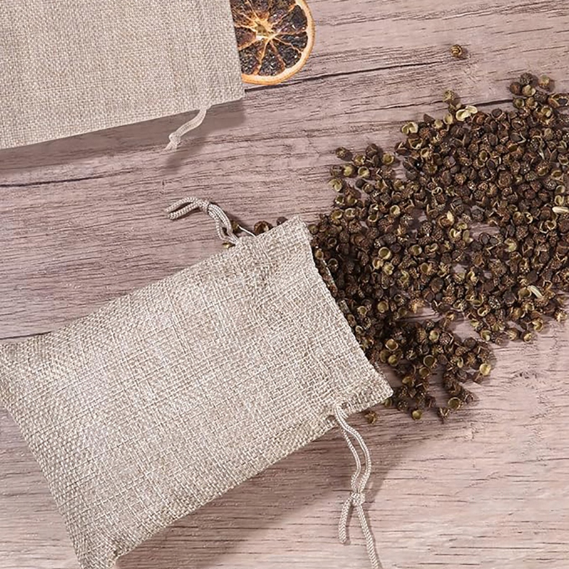 ♦ ️ Конструкція з струною: Кожна сумка для джуту закрита струною, витягніть струну, вміст сумки не випаде легко, а також легко відкривається або закривається, щоб запобігти бруду та втрати предметів. Бавовняний мішок є практичним для зберігання дрібних предметів, таких як кавові зерна, а також можна носити.