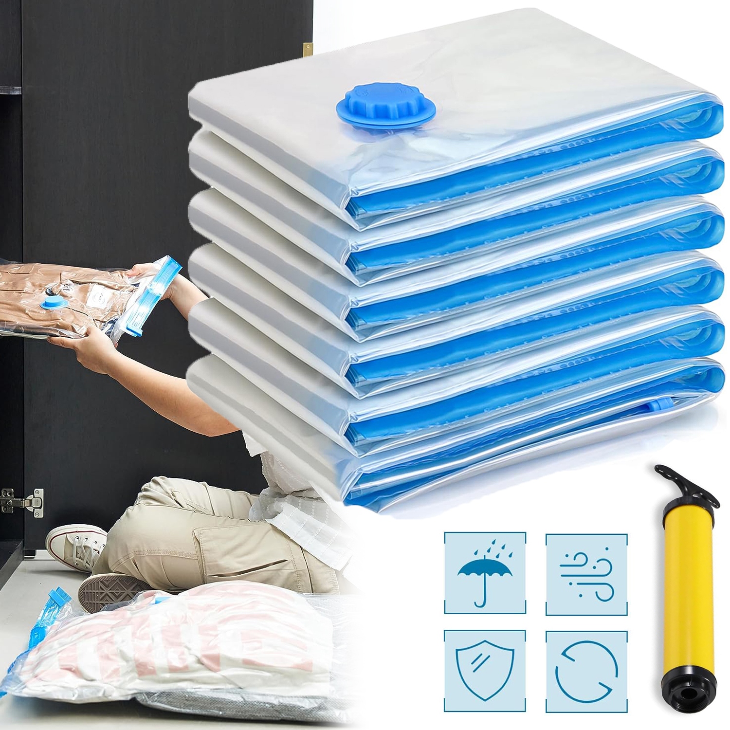 ✔✔✔【Просто розумно】:Вакуумний пакет економить до 80% місця під час зберігання - як сумка для одягу та сумка для зберігання. Це забезпечує більше місця для гардеробів і житлових приміщень