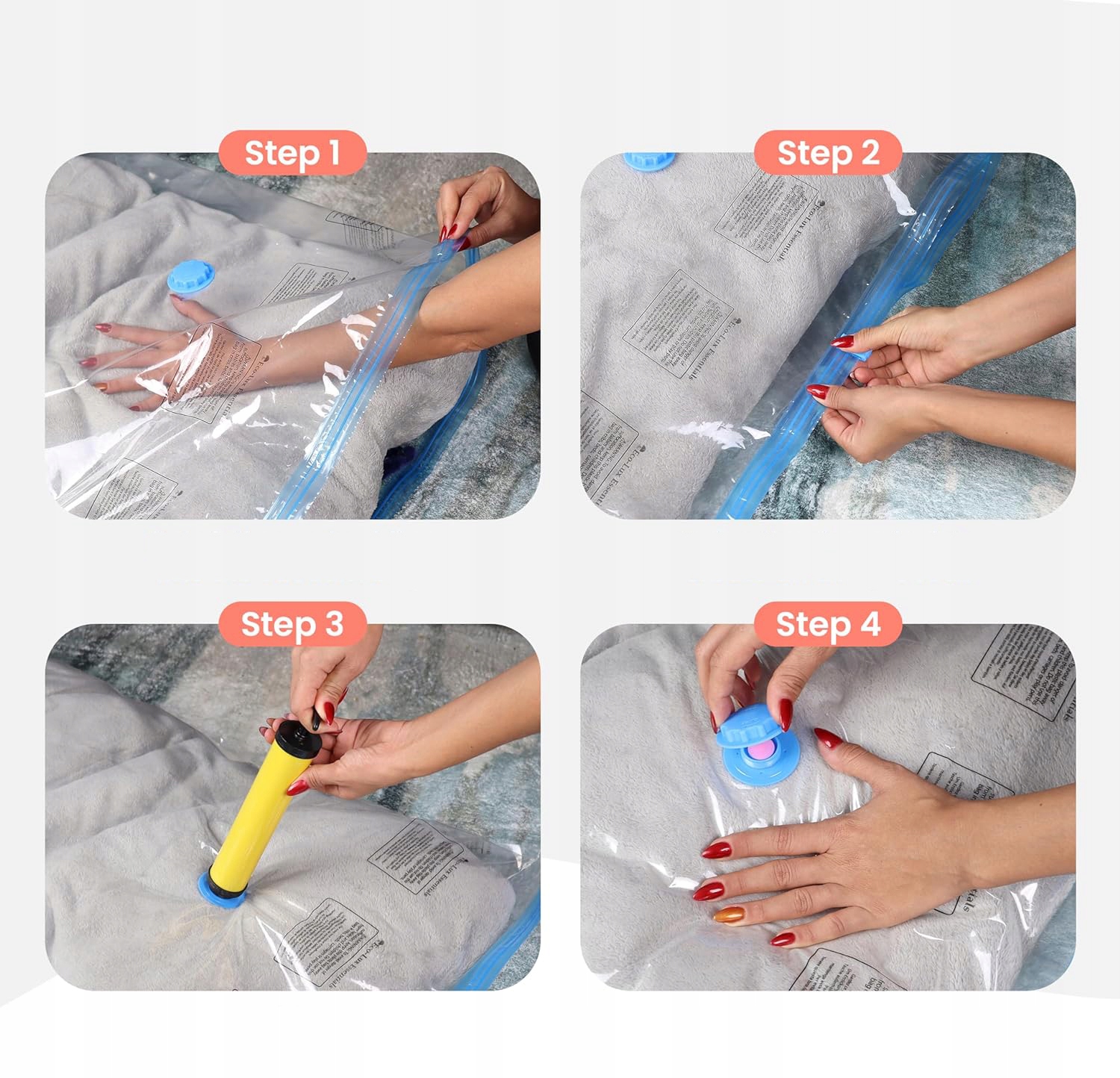 - Вакуумні пакети можна використовувати вдома, а також під час подорожі чи переїзду, багаторазового використання.