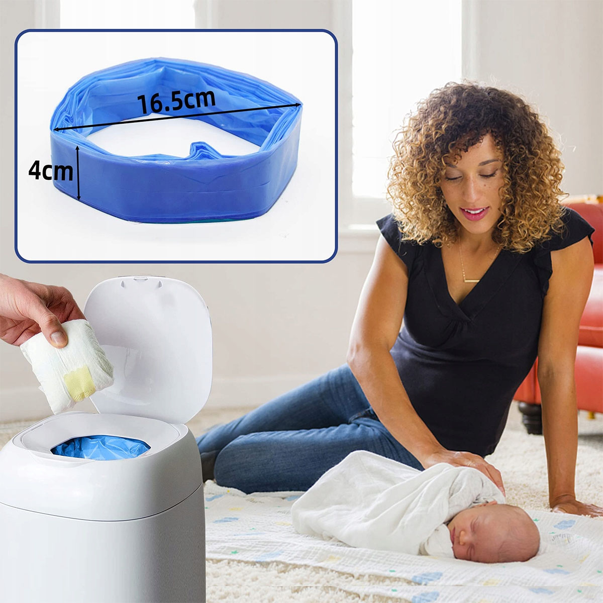 - МІШКИ З ПІДГУЛКАМИ ПРОТИ ЗАПАХУ:Ці щільні поліетиленові пакети проходять спеціальну обробку проти запаху, щоб запобігти поширенню неприємного запаху від брудних підгузків у контейнері для підгузників і кімнаті дитини.
