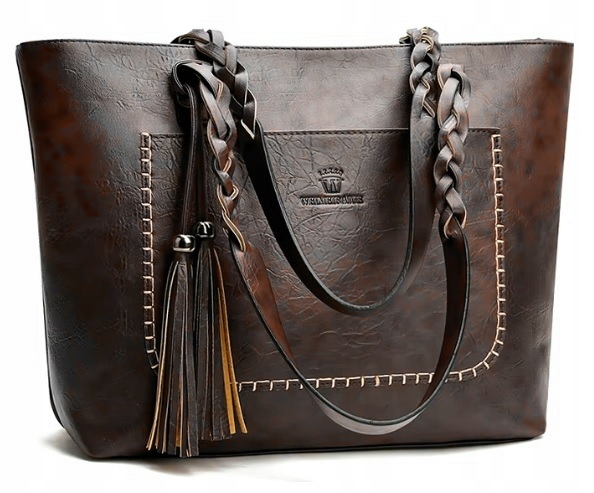 ВЕЛИКА ЖІНОЧА СУМКА ДЛЯ РОБОТИ ШОППЕР КОРИЧНЕВОГО ЕКО ШКІРА ПОДАРУНОК