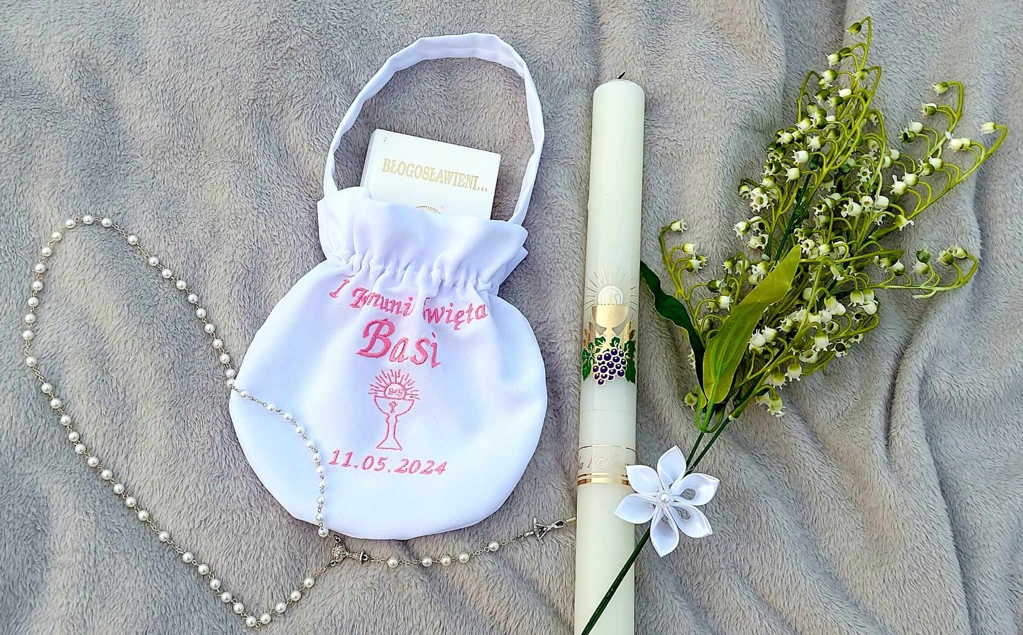 Сумка є чудовим доповненням до стилю для причастя, а також дуже практична, вона може вмістити напр. книга, чотки, хустинки і т.д.