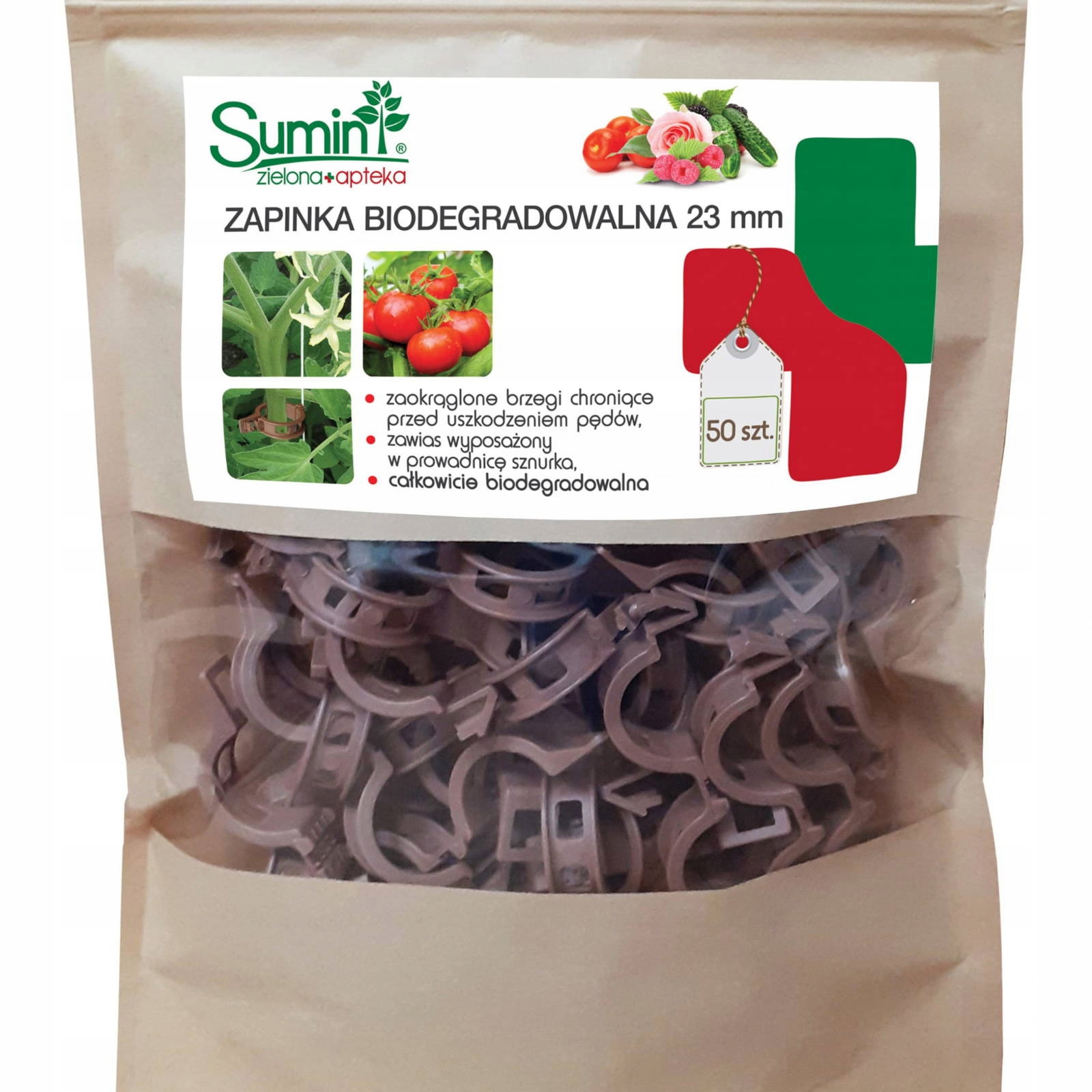 Рослини суми з спеціальним, безпечним для пагонів структури забезпечують стабільну, довгу, що лежить посадка рослини (наприклад, томатних пагонів, огірків, фруктів, декоративних рослин) до струни. Продукт був розроблений таким чином, щоб забезпечити добровільну привід без необхідності обмотатися навколо струни та забезпечити відповідну підтримку навіть для важкої рослини протягом усього періоду вирощування. Застібка виробляється з повністю біологічно розкладаного біополімеру. Наприкінці сезону решта пагонів рослини можна компостувати разом із застібкою, або лівими затискачами на поверхні ґрунту для повного розпаду, не викидаючи їх.