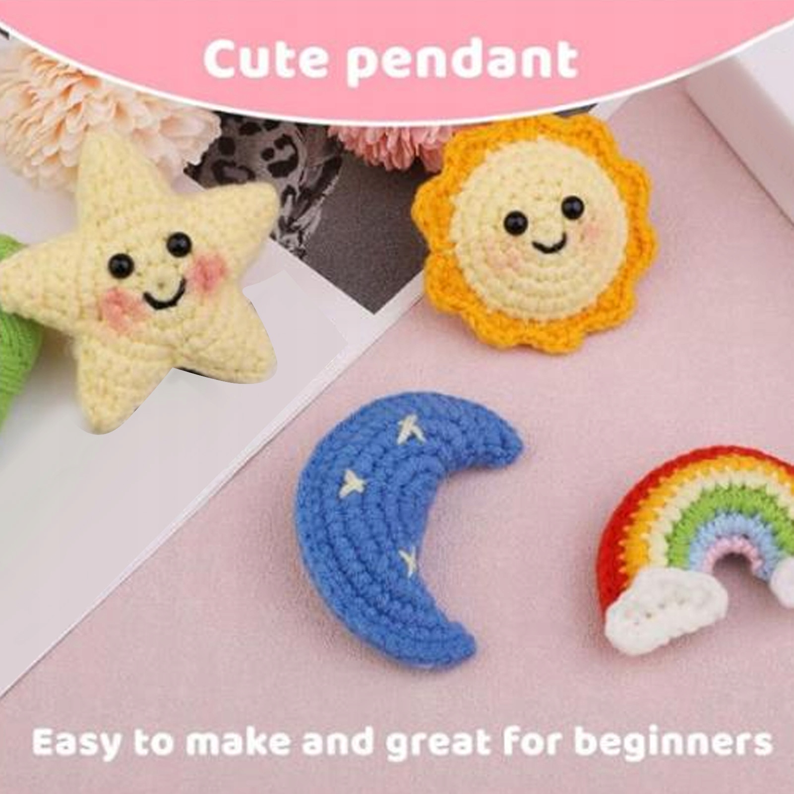 4. Координація рук очей: Цей набір для гачком для початківців призначений для поліпшення вашої концентрації та координації очей вручну. Ви можете легко дотримуватися навчального посібника, щоб зробити милі підвіски. У вас буде відчуття досягнення, створивши сонце, місяць і зірку з пряжі.
