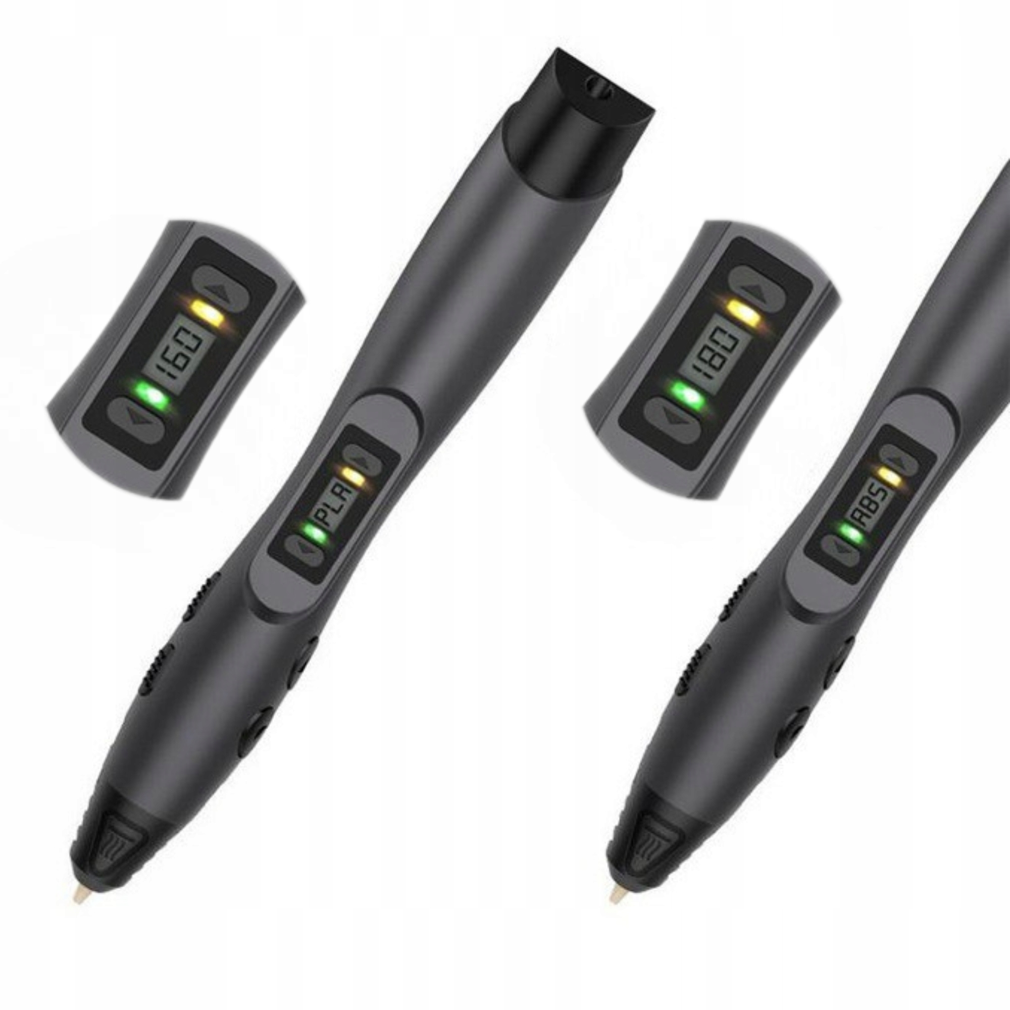 3D-ручка оснащена РК-дисплеєм, на якому відображається вибрана нитка, встановлена швидкість друку та поточна температура.