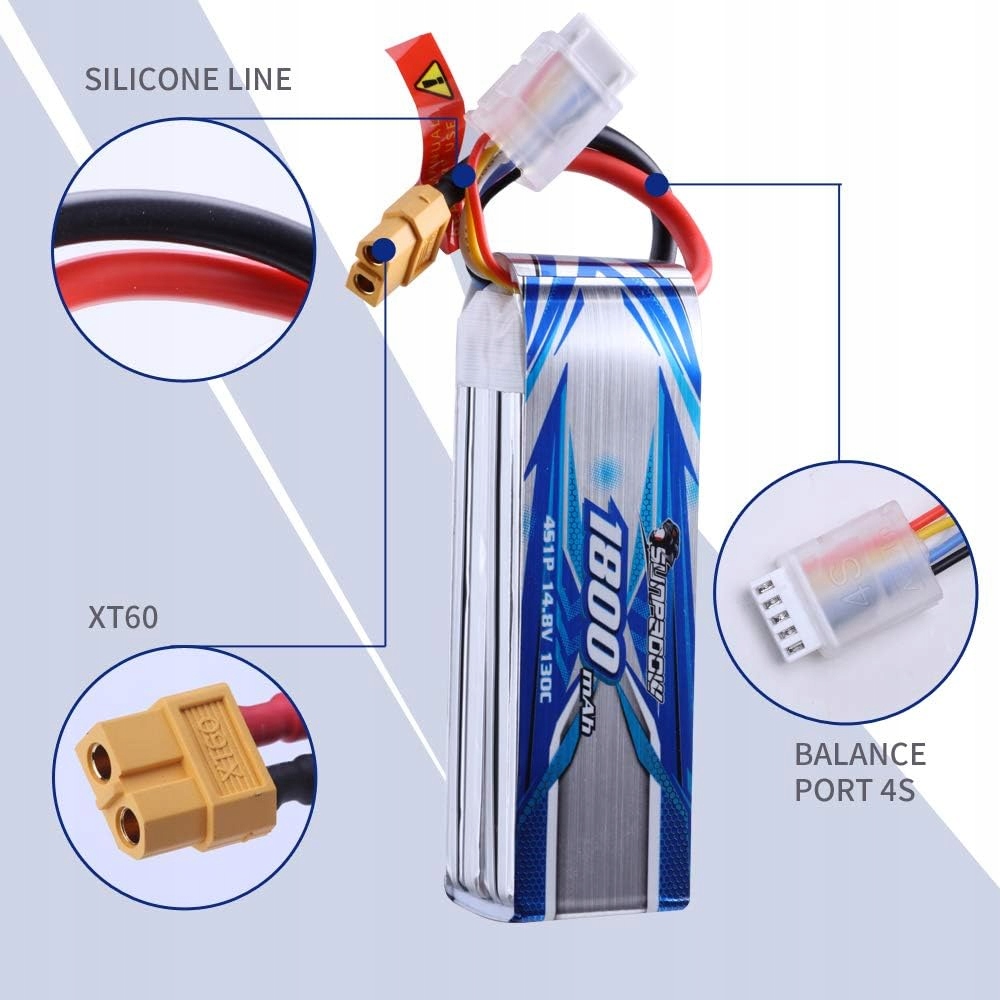 Акумулятор Sunpadow 14,8 В 4S Lipo батарея 1800 мАг 130C Софт-пакет із роз’ємом XT60 для вертольота, літака, квадрокоптера, гонок, хобі