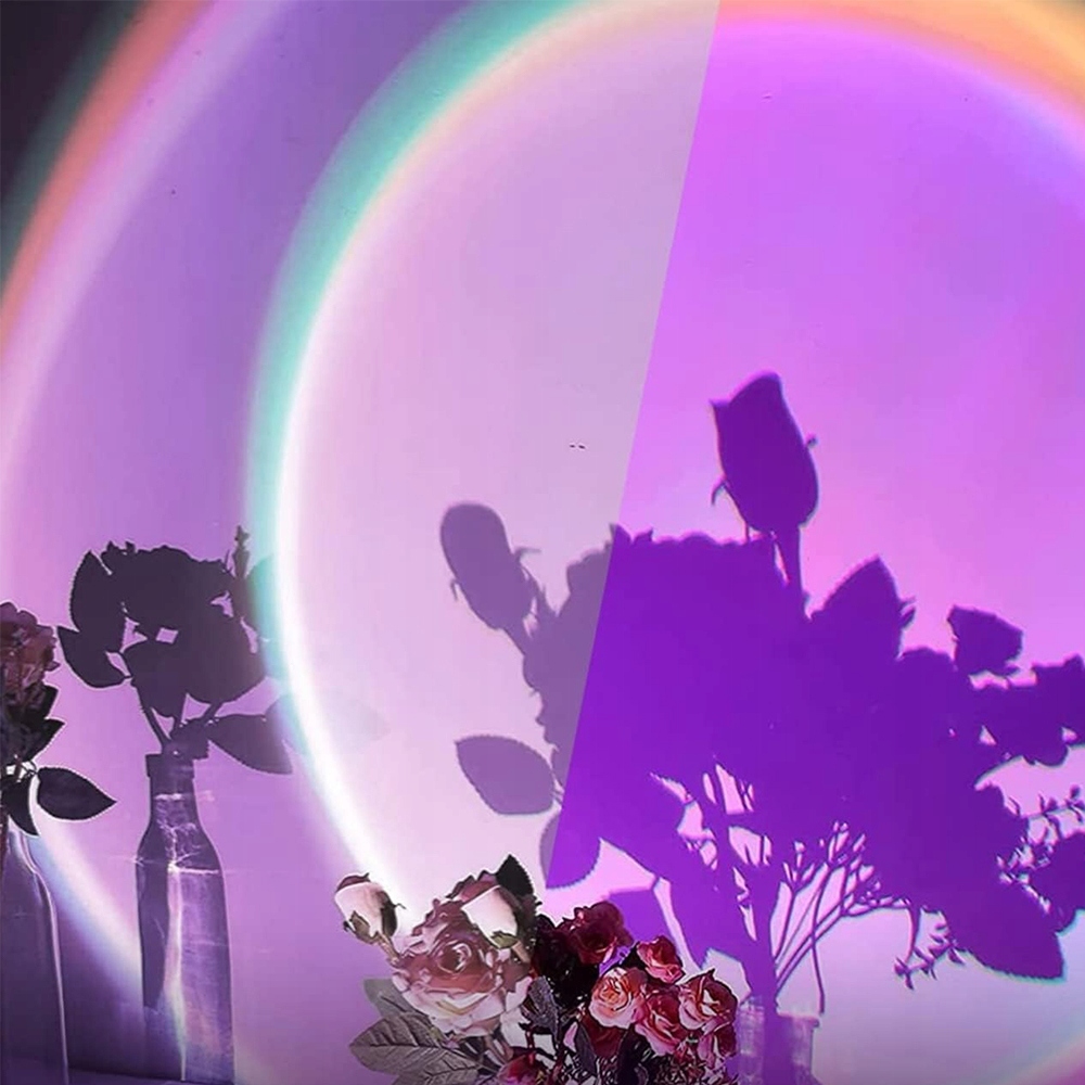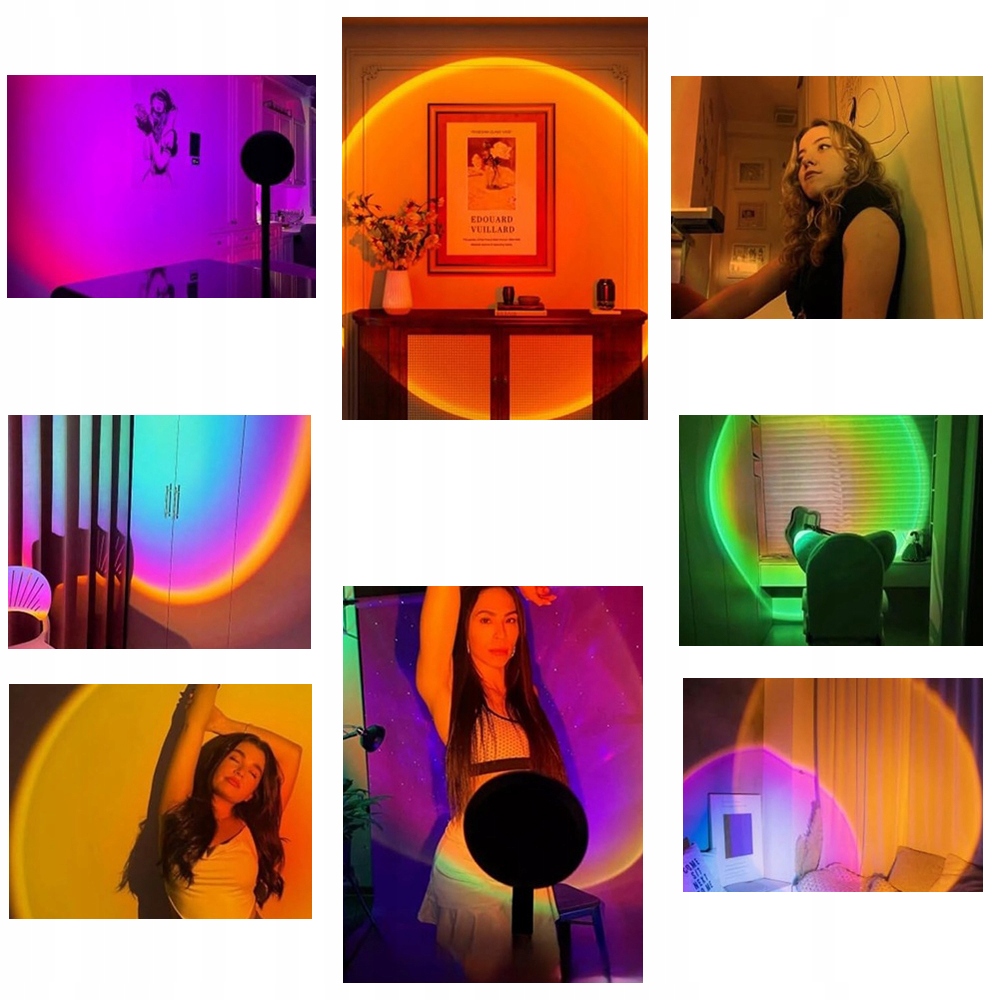 - Проектор Sunset Light — це світлодіодна лампа RGB зі зміною кольору, яка ідеально підходить для спалень, віталень, ігрових кімнат, вечірок тощо.