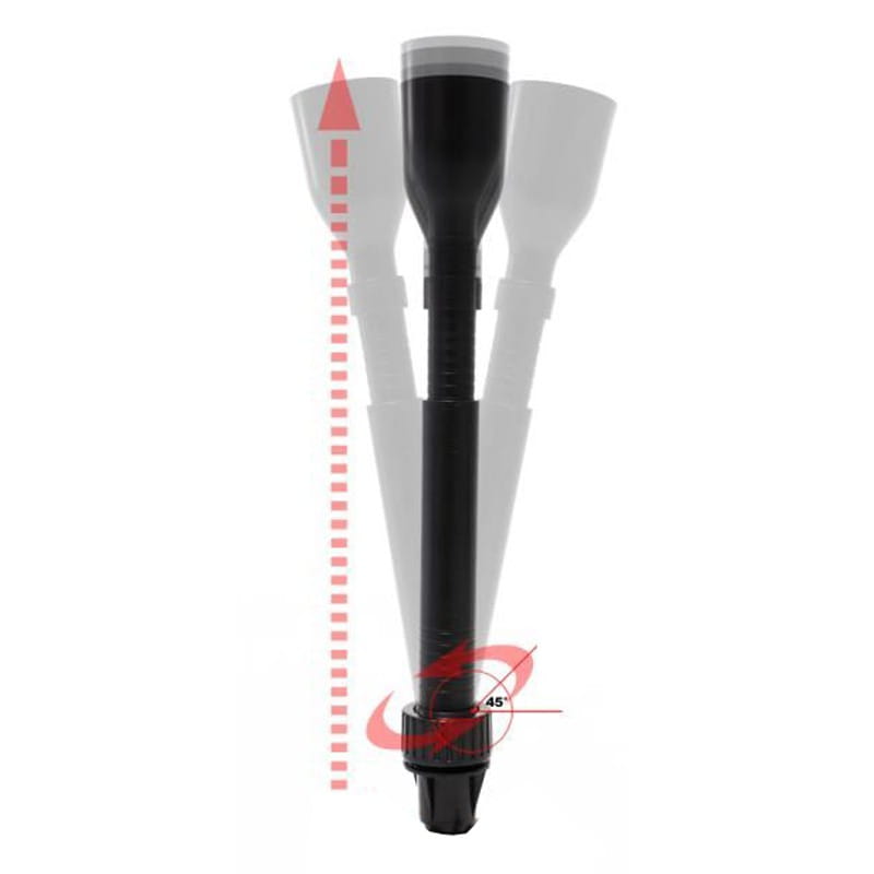 Висота фонтану регулюється завдяки телескопічній трубі (глибина занурення 10-45 см), а встановлення водовідводу на стику завжди дозволить встановити струмінь ідеально вертикально.