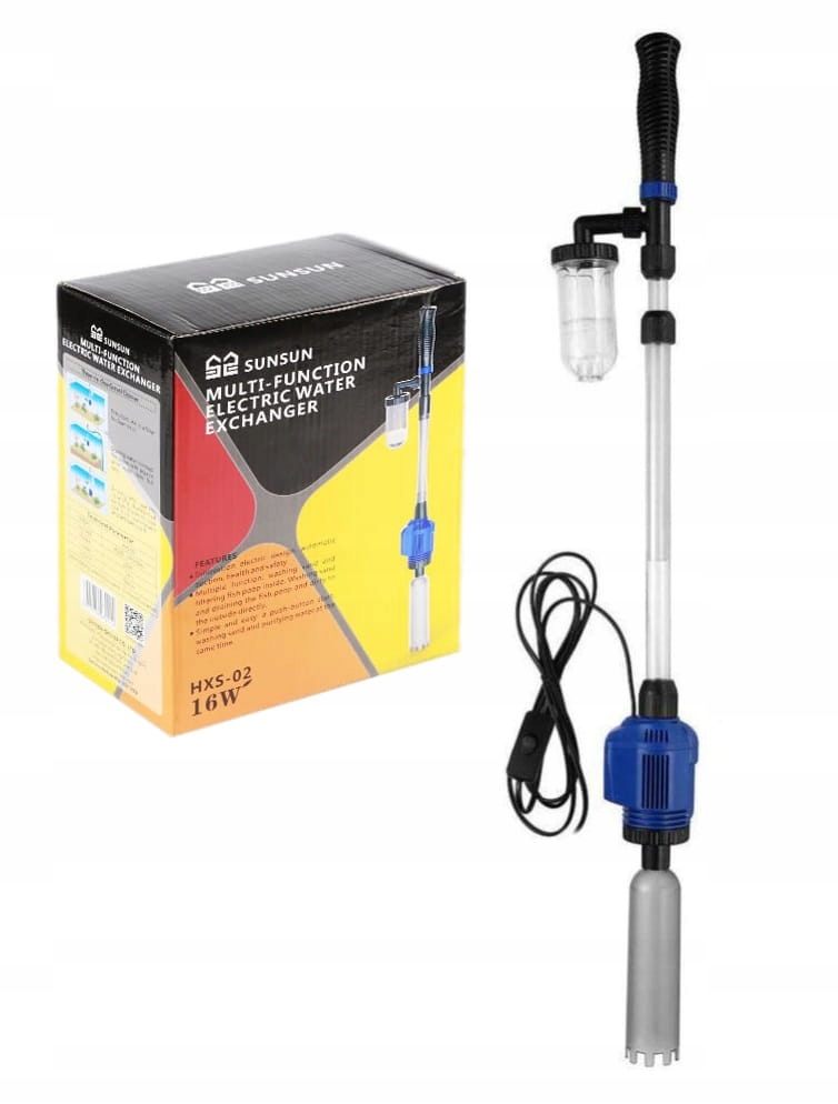 Ілоочисник SunSun дозволяє очистити дно акваріума, не намочивши руки. Дуже міцний, з високою потужністю всмоктування 16 Вт. Повністю водонепроникний, можна занурювати у воду. Є варіант очищення по замкнутому контуру, без зливання води з акваріума або з заміною води, після підключення зливного шланга.