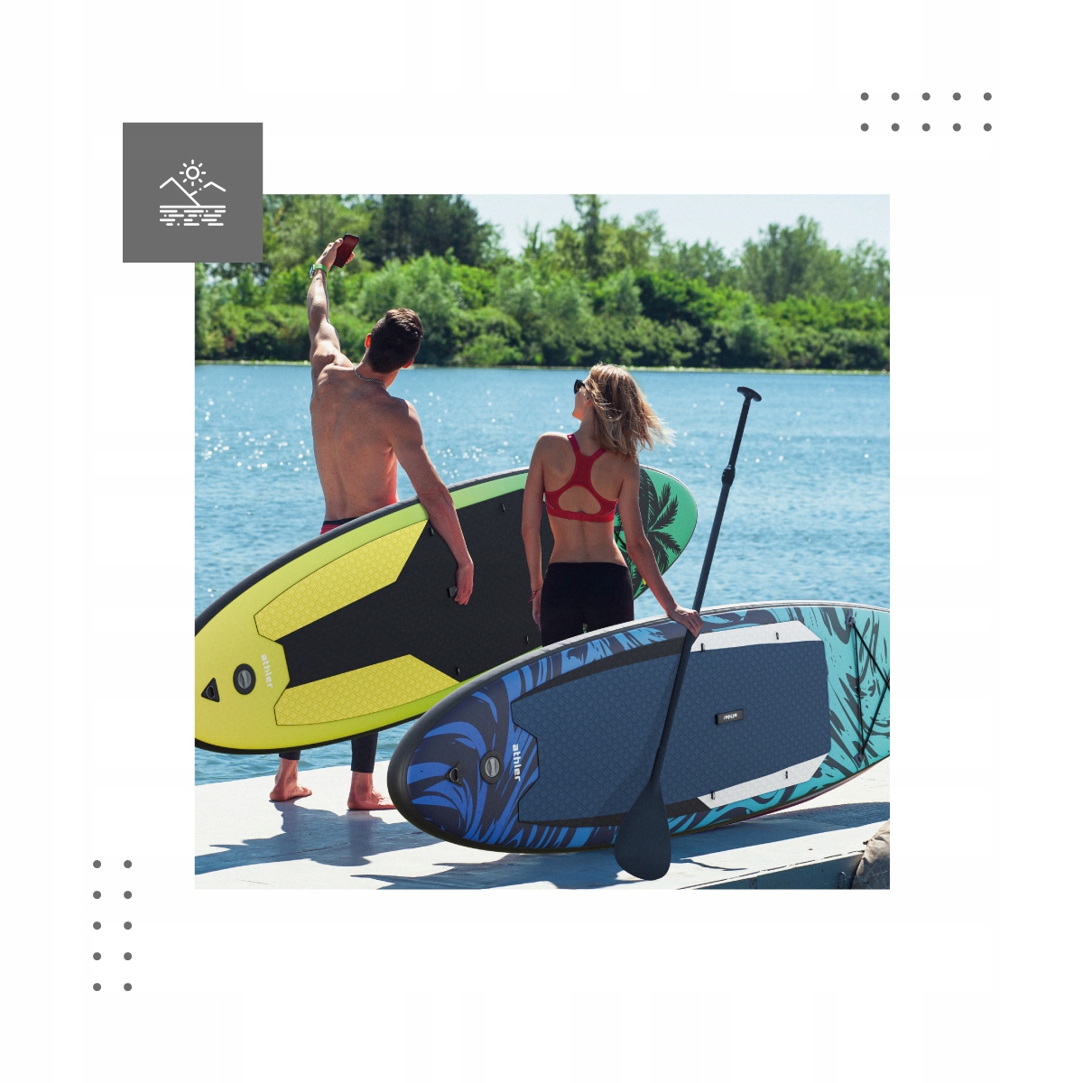 Сап-дошка Athler вирізняється оригінальним оригінальним дизайном, який приваблює погляди своєю свіжістю та креативністю. Два візерунки на вибір, сміливі кольори та динамічні лінії роблять дошку не лише чудовою для плавання, але й способом виразити свій індивідуальний стиль та індивідуальність.