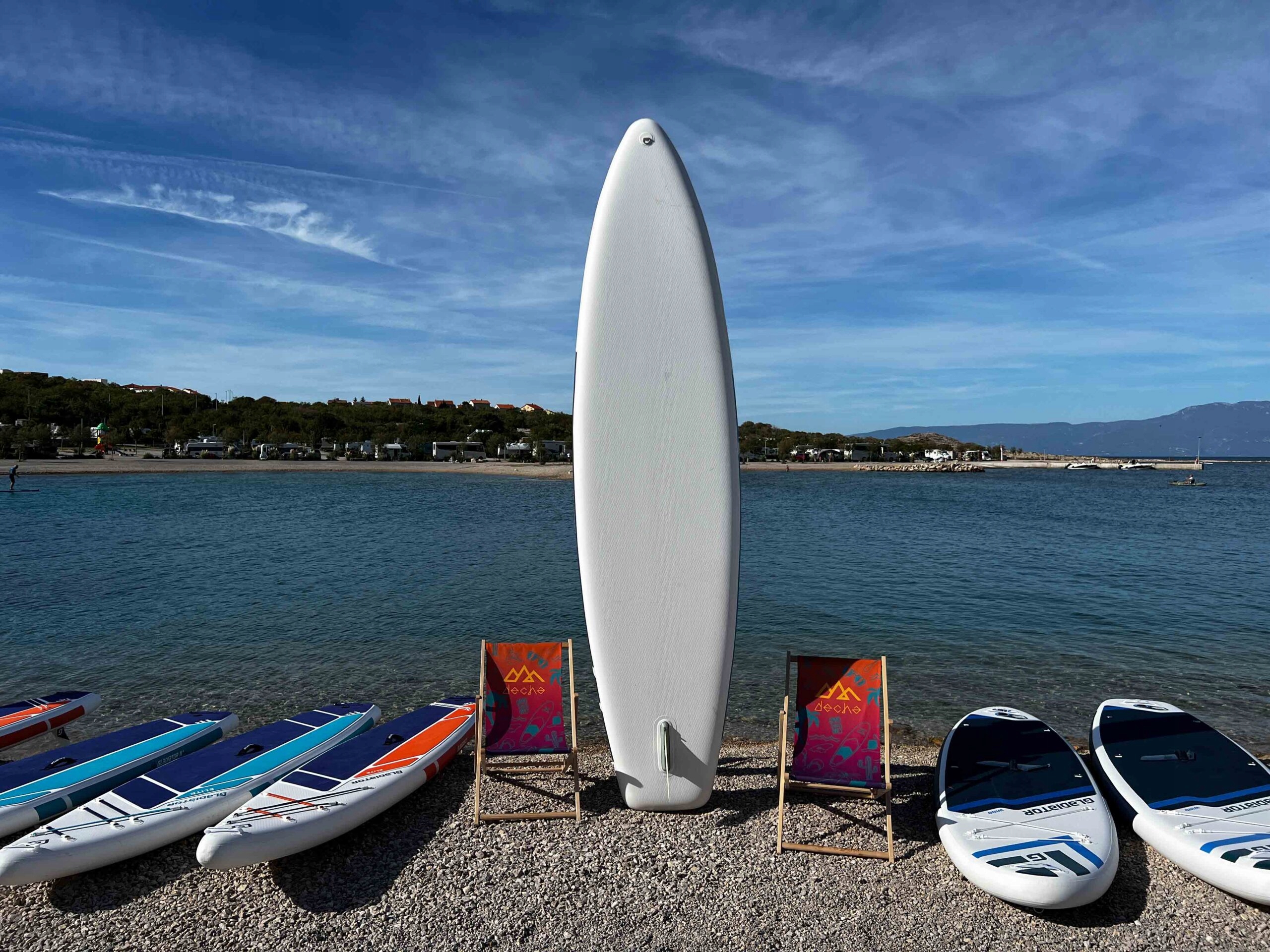 Крім того, ця SUP-дошка оснащена чудовим, дуже легким, регульованим веслом із 3 частин, виготовленим із 100% вуглецевого волокна – так званого карбону. У комплект також входить поводок, тобто страхувальна мотузка. Сумка-рюкзак додатково оснащена колесами для зручності транспортування спорядження на воду.