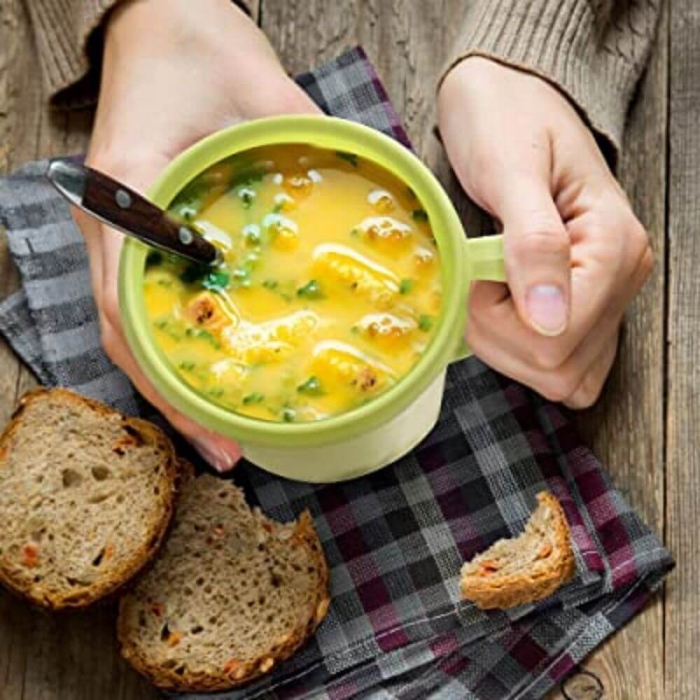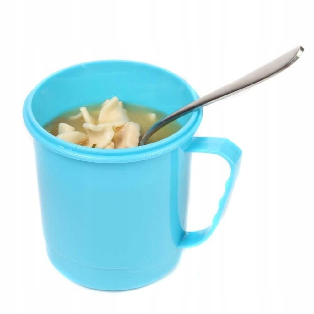 Зручна і практична чашка для їжі, яку можна розігріти в мікрохвильовій печі. Кружка для мікрохвильовки ідеально підходить як ємність для супів або інших страв. Просто приготуйте улюблену страву і візьміть її з собою, наприклад, на роботу. Ланчбокс має щільну кришку, яка закривається на клацання, що зберігає наш обід свіжим.