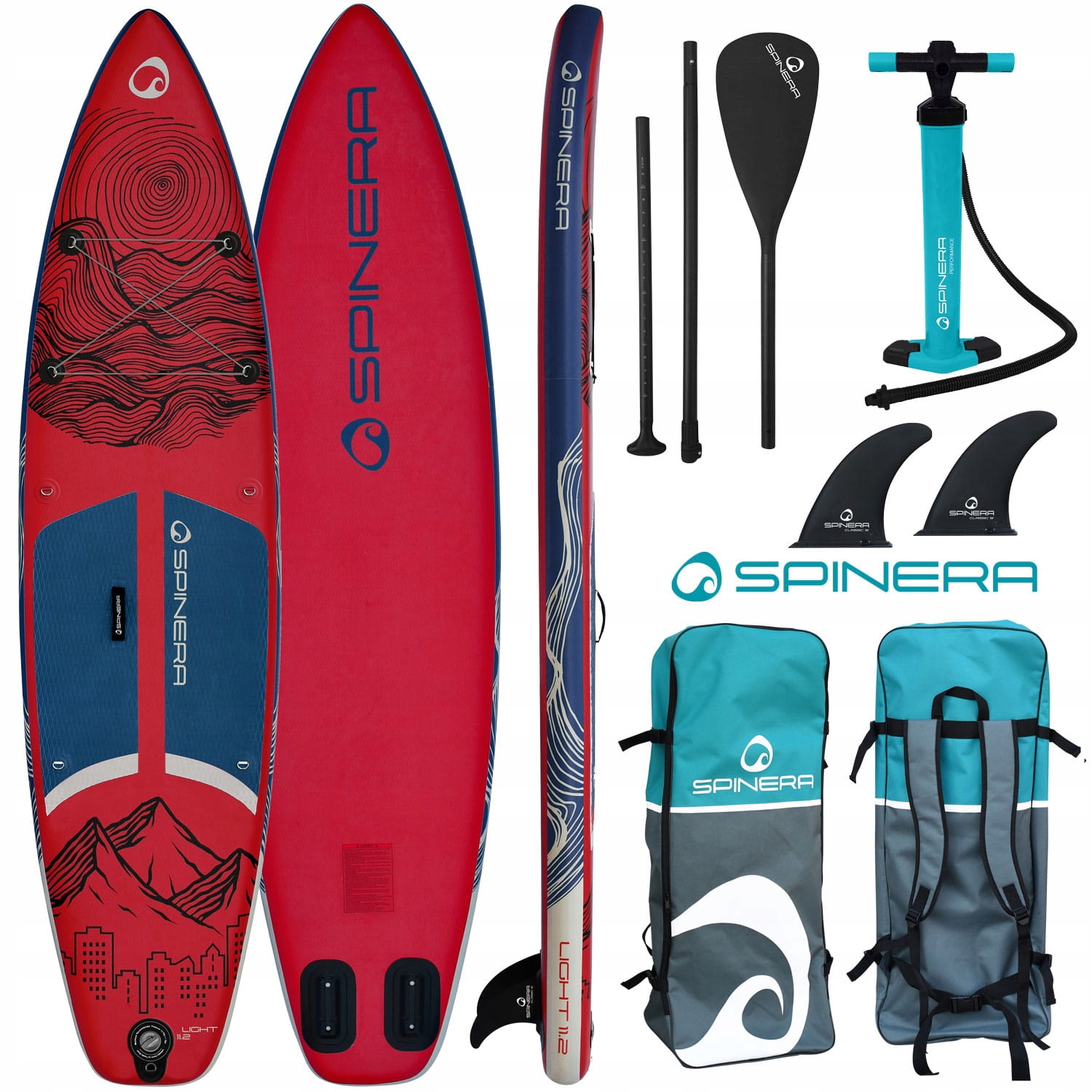 Spiner Light 11'2" Ultra Light Technology - ідеальна дошка для кожного любителя Spo - початківців або більш досвідчених. Spiner Light 11'2 "ULT - це чудовий варіант для всіх людей, які шукають свою першу дошку, та людину, яка шукає для себе ще одну дошку. Дошка легко маневрую, і належним чином жорстка і стабільна. Завдяки обтіченій формі, легкість та стабільній конструкції, дошка підходить для плавання на озерах та річках із спокійним струмом. Передні та кільця для встановлення сидіння на байдарках.