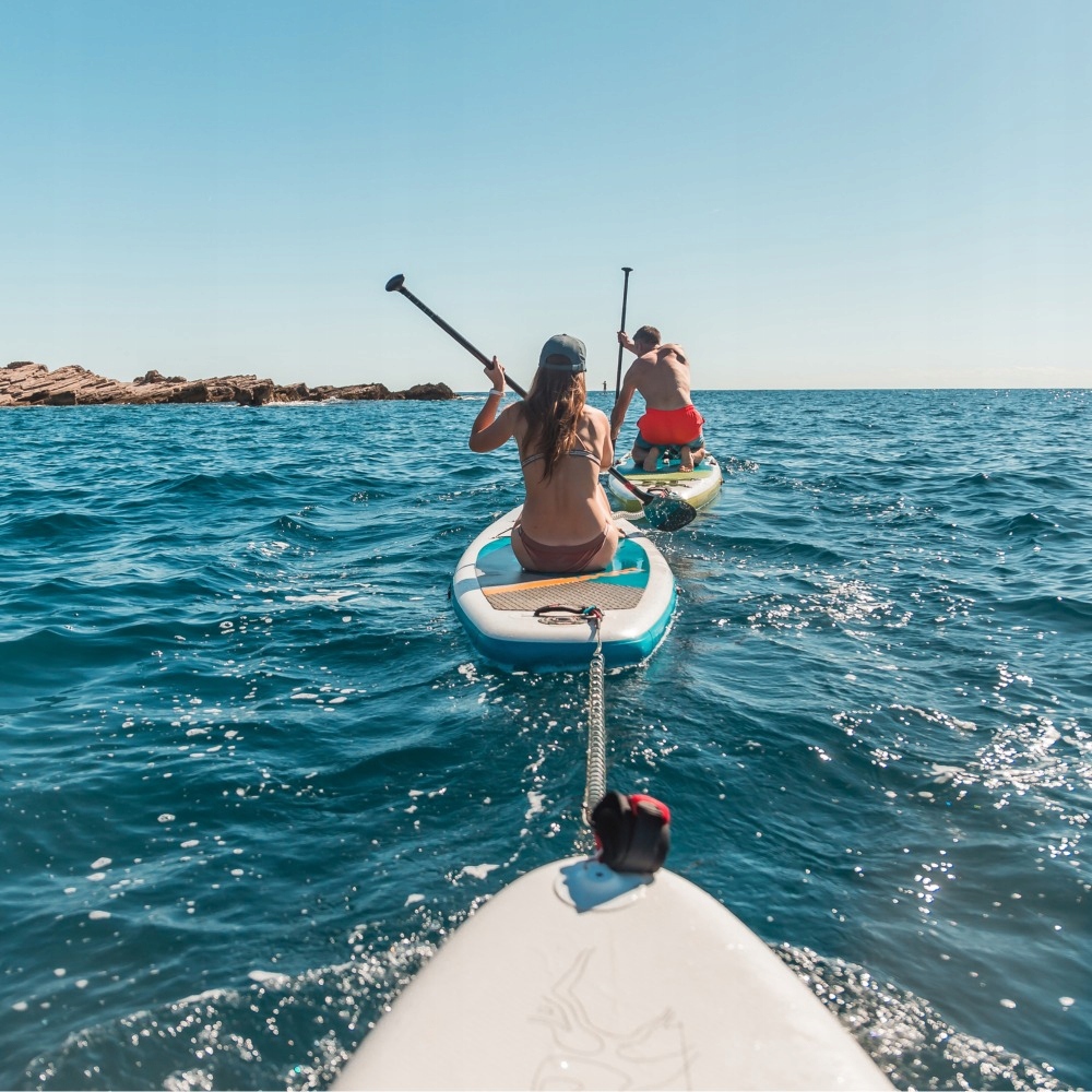 НАДУВНА ДОШКА ENERO- ідеальний вибір для індивідуальних або сімейних поїздок вихідного дня, як для любителів, так і для спортсменів. Завдяки рюкзаку для зберігання дошки в комплекті у вас не виникне проблем з її транспортуванням, вона поміститься в будь-який багажник, а спеціальна велика ручка з ручкою внизу дошки полегшить її перенесення. Однак завдяки ручному насосу високого тиску з індикатором тиску у вас не виникне особливих проблем із накачуванням SUP-дошки, а необхідний ремкомплект дозволить усунути будь-які пошкодження.