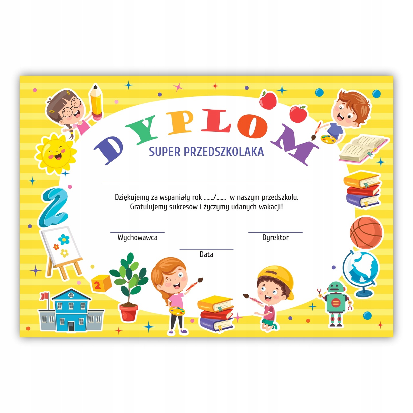 Диплом супер дошкільнячого - це ідеальна пропозиція для дітей з нагоди їх закінчення освіти в дитячому садку.
