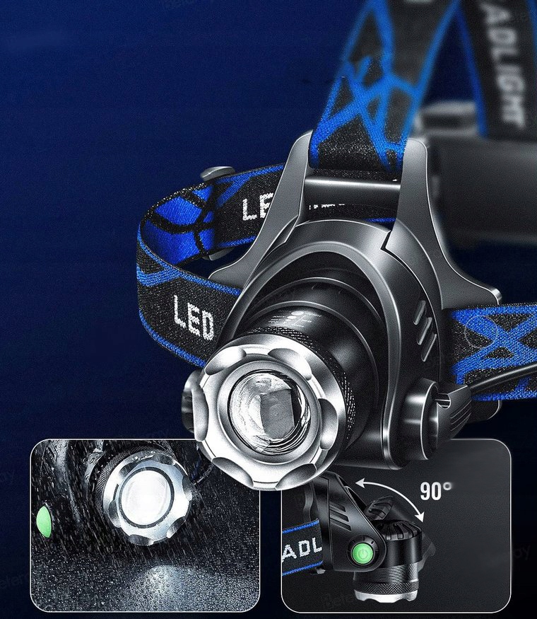 Налобний ліхтар має можливість установлювати кут 90° для всіх світлодіодів, що робить його дуже практичним, і ви можете адаптувати його до ваших індивідуальних потреб або дорожніх умов. Регульований кут нахилу головки дозволяє розташувати пристрій прямо перед собою, щоб висвітлили дорогу вдалину. Нахил фари на 90° дозволить вам прямо бачити те, що знаходиться під вашими ногами.