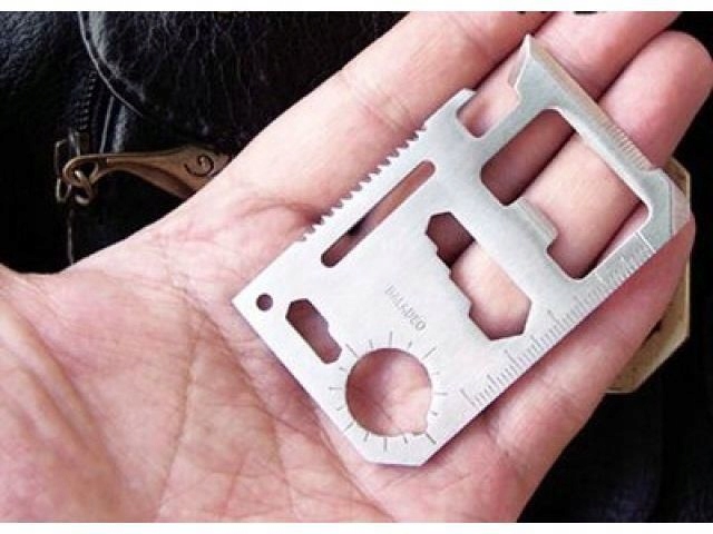 - карта виживання – розміром із кредитну картку, з можливостями інструментарію. 11 ключових функцій для підтримки життя в кризовій ситуації - лінійка, шкребок для риби, викрутка чотирьох розмірів, кільце, яке допомагає вказувати напрямок на карті, тощо.