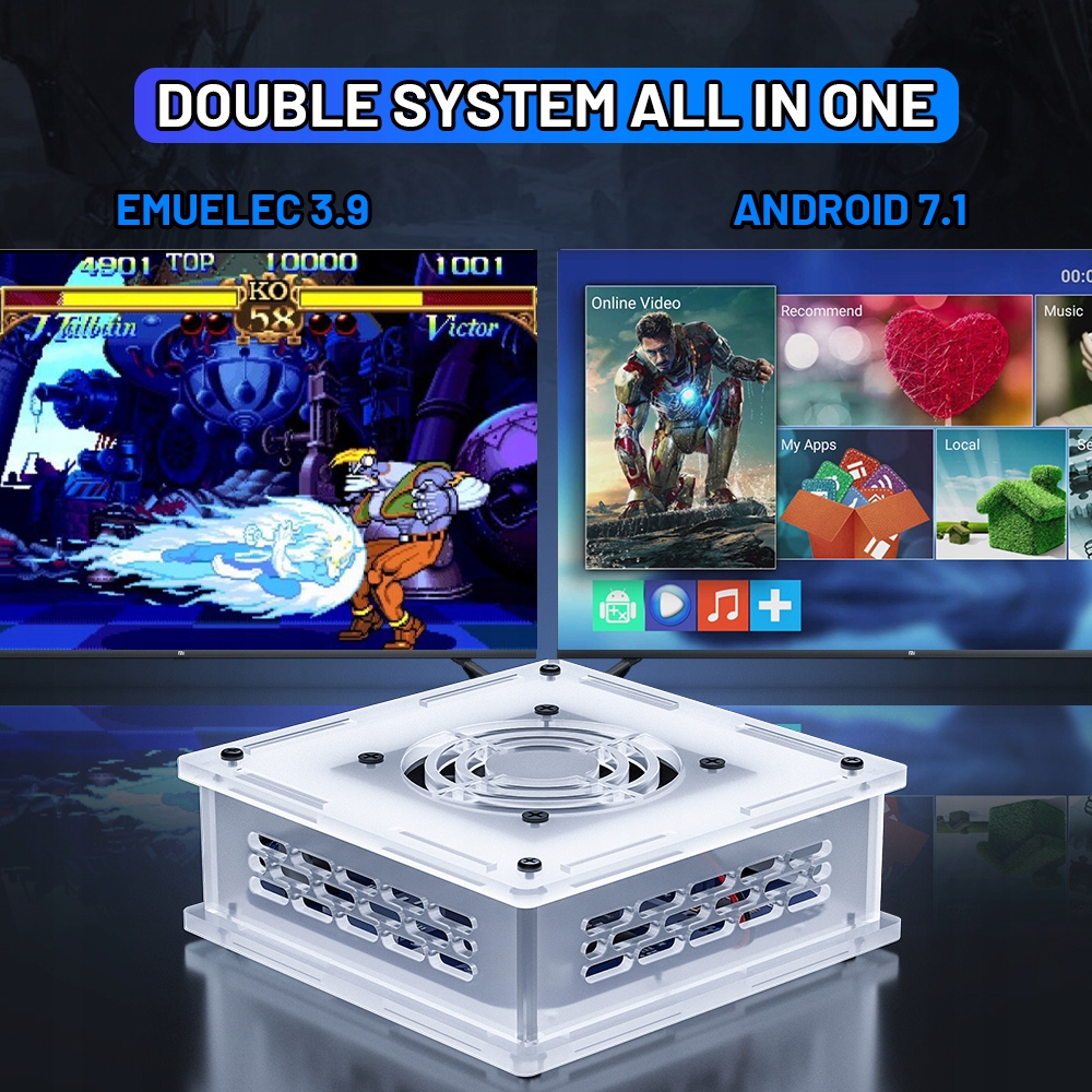 3. Дві системи в одній, Super console x pro plus має вбудовану ігрову систему EmuELEC3.9 + систему Android 7.1 TV, маленьку, але потужну.