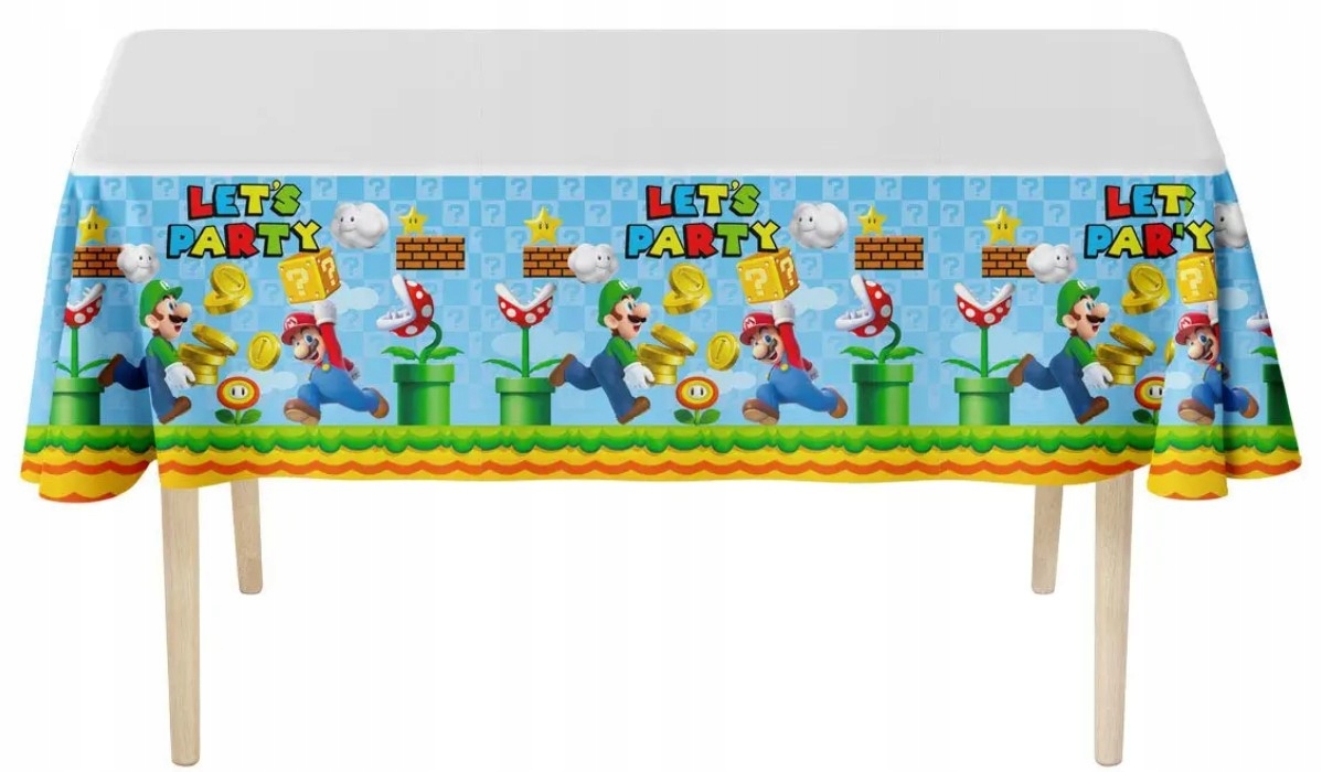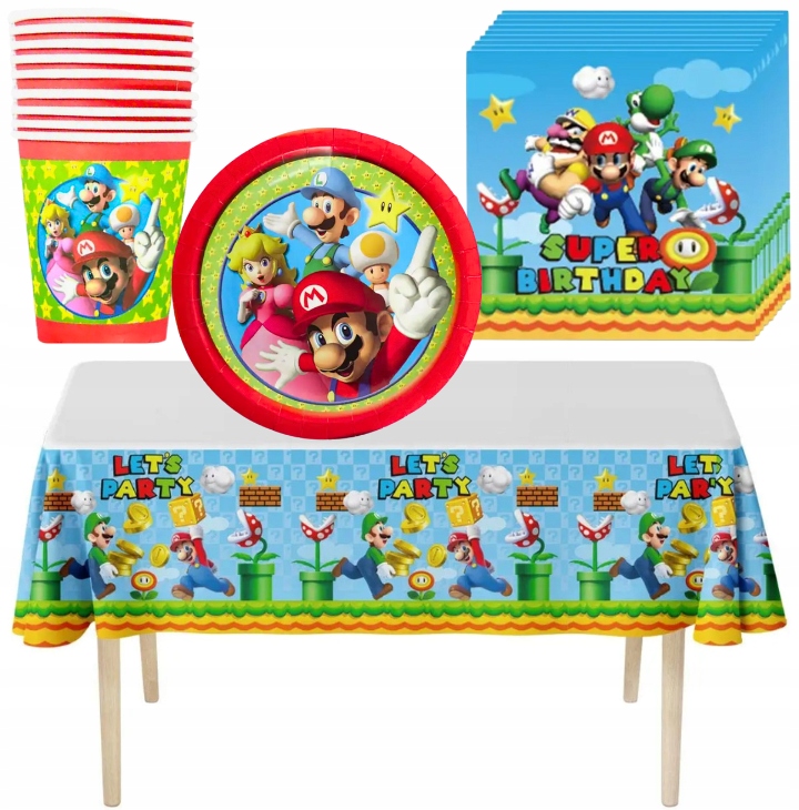 Набір містить: 10 чашок + 10 тарілок + 20 серветок + 1 фольгована скатертина Super Mario