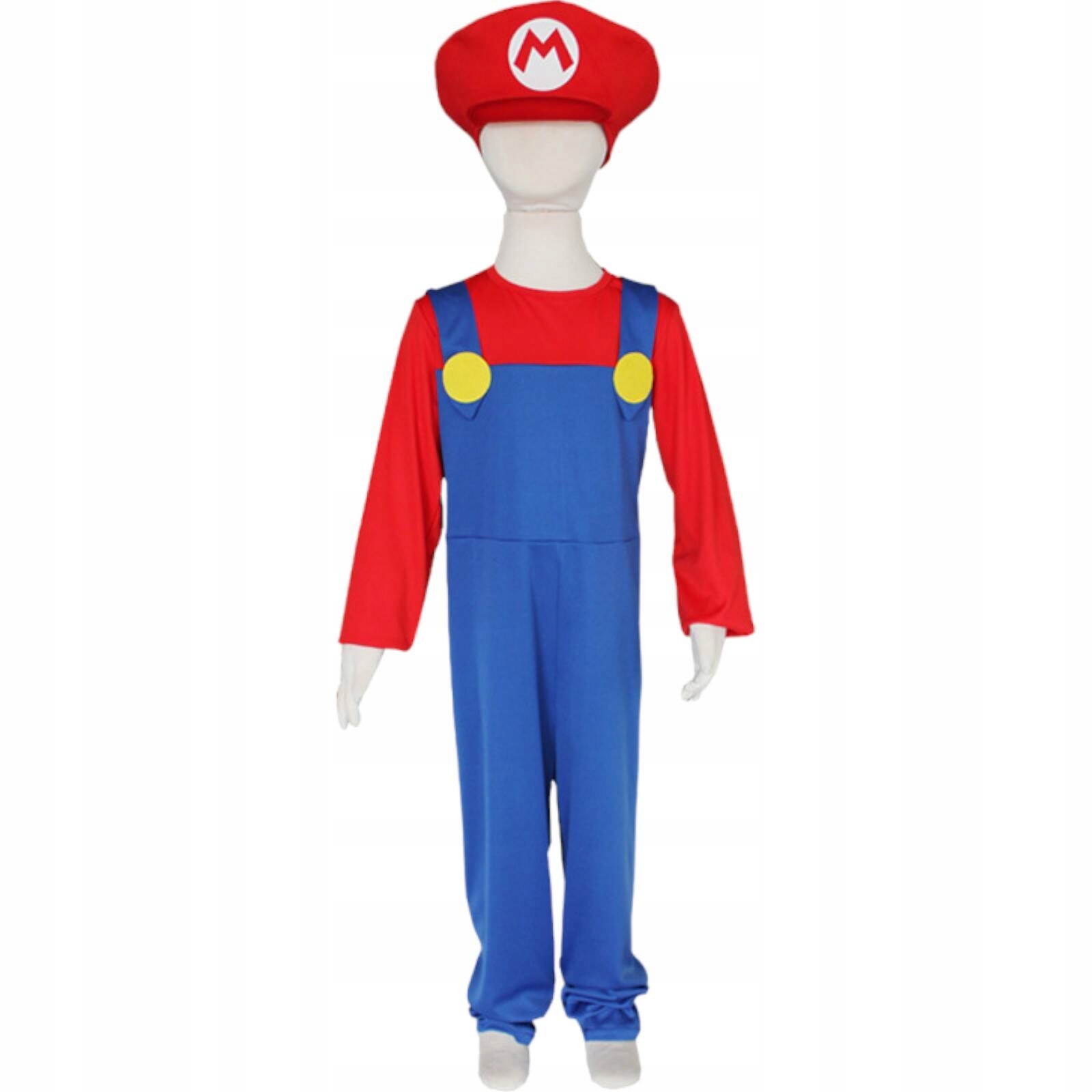 - Повний набір костюма: У набір входить все необхідне для трансформації у Маріо: сині штани, червона футболка з довгими рукавами, червоний капелюх із логотипом «M» і характерними вусами.