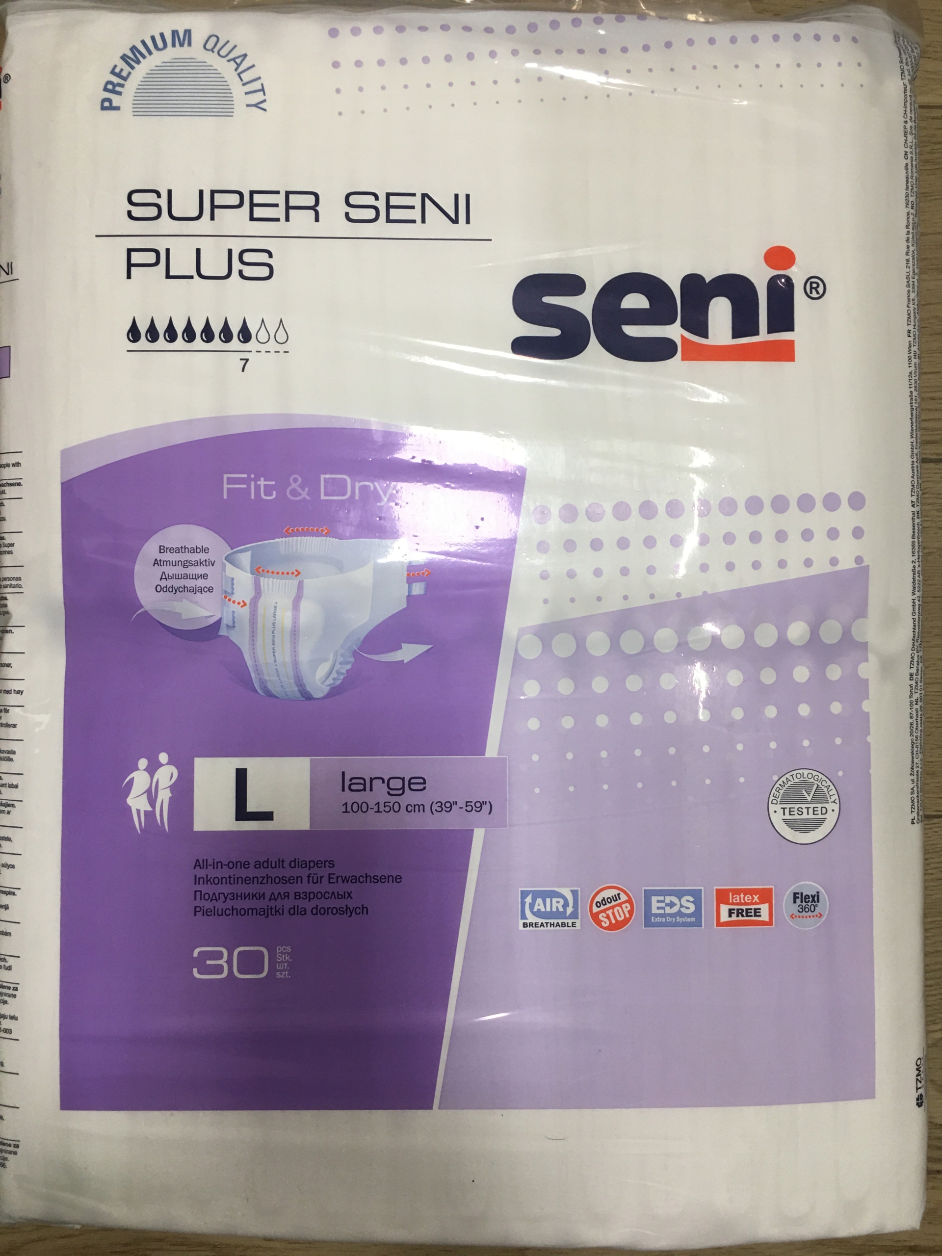 дихаючі пелюшки (Pampers) для дорослих. Підгузники Super Seni Plus призначені для людей з важкими проблемами нетримання сечі. Медичний продукт. Розмір L