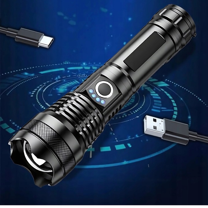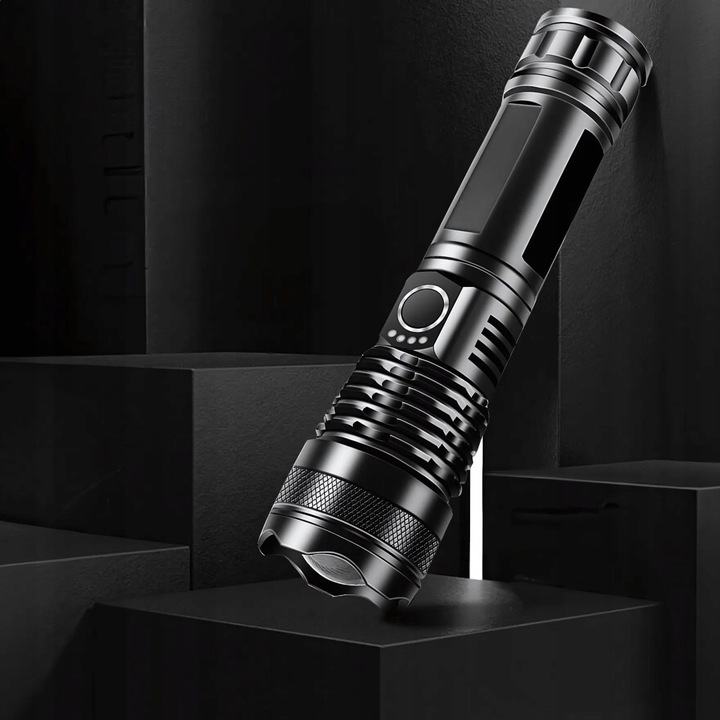 Ліхтарик пропонує 5 різних режимів освітлення, , які ви можете адаптуватися до своїх потреб. Завдяки функції Zoom , використовуючи ковзаючу або обертову головку, ви можете зосередити промінь на певній області, щоб отримати краще освітлення. ліхтарик.