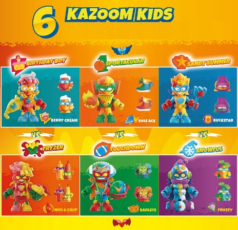 - ФІГУРКИ КОЛЕКЦІЄРА, ЩО ЗМІНЮЮТЬ КОЛЬОР – Морф, надзвичайно рідкісний у серії, є невдалим експериментом професора К. Це настільки нестабільна суміш, що... вона змінює колір! Ось чому в Kaboom City є 6 нових Kazoom Kids, і вони також змінюють колір! Іменинник, Перукарня, Піщане літо, Сніжне, Тачдаун і Спортивний. Зберіть їх усіх!