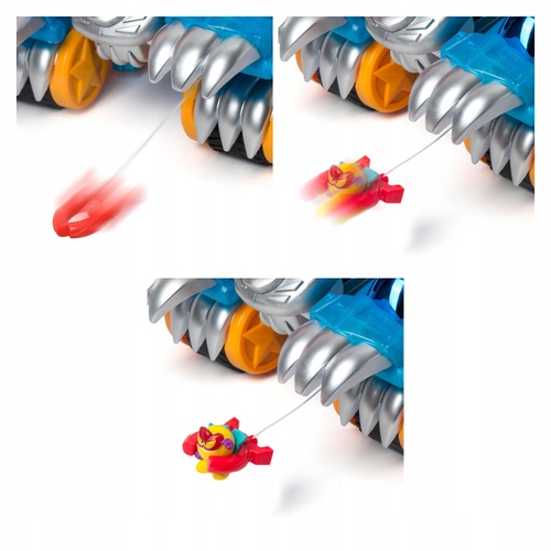 Для нього достатньо одного жесту, щоб він трансформувався - натисніть на хвіст, і він перейде з режиму ГОНОЧНОГО в режим АТАКИ. Він може використовувати свої кігті, щоб стріляти кліщами, щоб хапати SuperThings і тягнути їх до себе, натиснувши кнопку. Крім того, на одному з кігтів є спеціальна гармата з трьома снарядами!