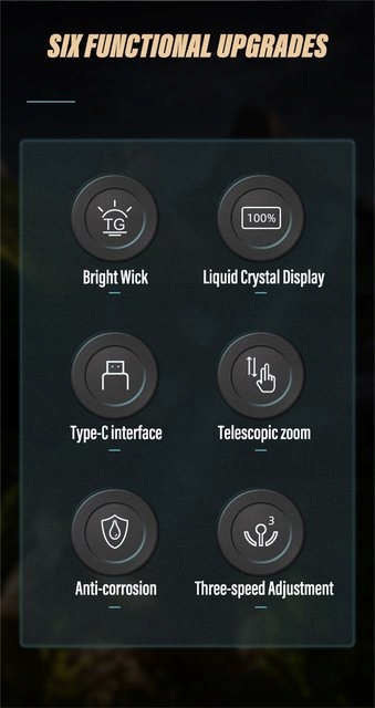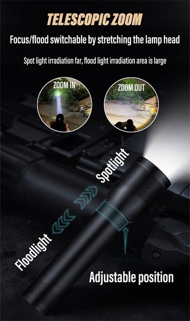 * Телескопічний масштаб: розтягніть голову до збільшення, діафрагма може бути збільшена та зменшена, може підтримувати поблизу та далеко освітлення.