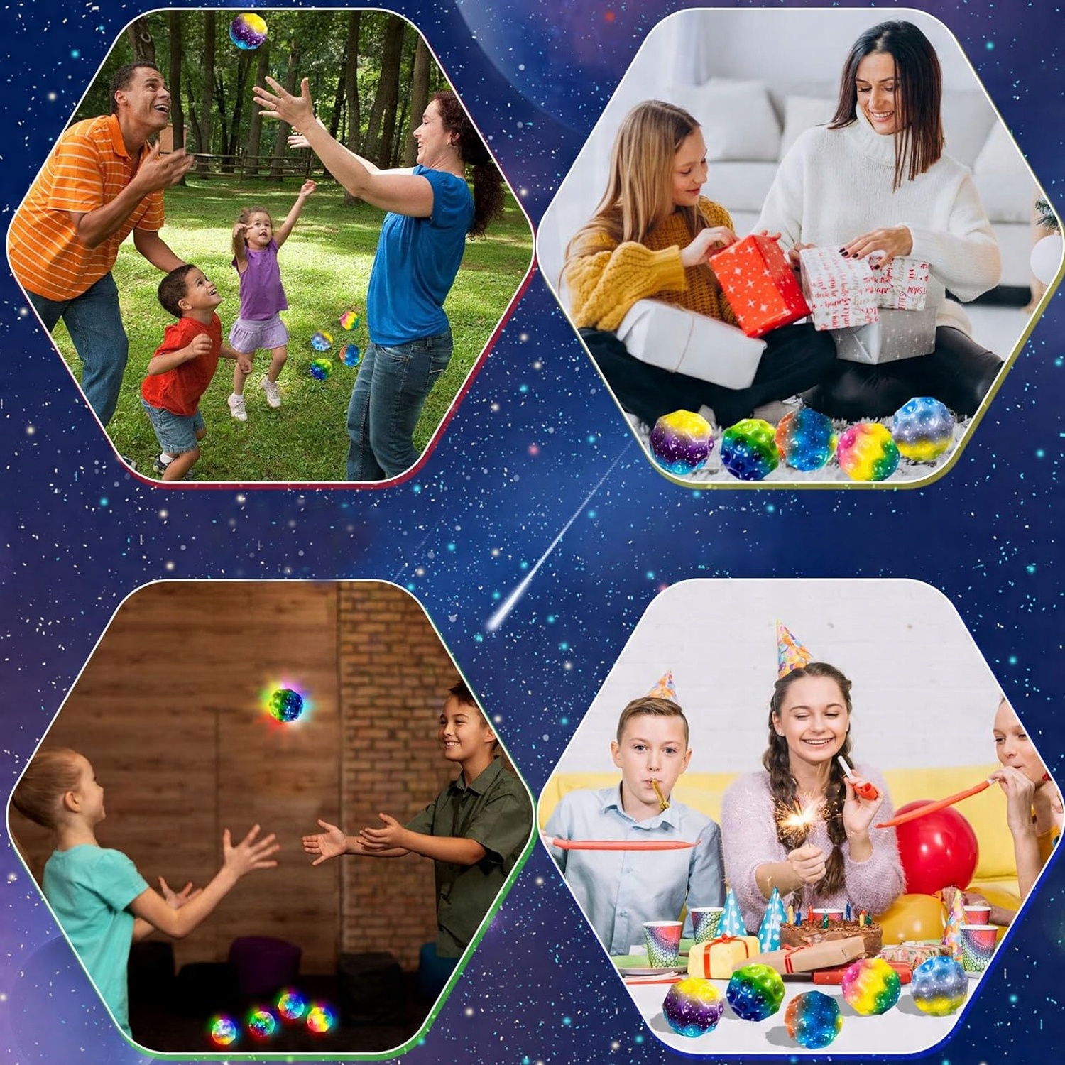 ✨✨【Легко хапати й хапати】: Космічна куля допомагає покращити координацію рук і очей. Використовується спортсменами як м'яч для спортивних тренувань. Це також чудовий сенсорний м’яч для дітей.