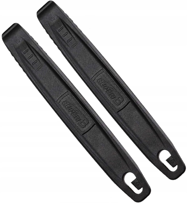 Набір SuperB із 2 ложок для зняття покришок велосипеда, виготовлених із армованого нейлону. Гладкі та делікатні краї мінімізують ризик пошкодження обода при знятті шини. Завдяки довгому важелю їх можна використовувати для демонтажу навіть самих тугих шин.