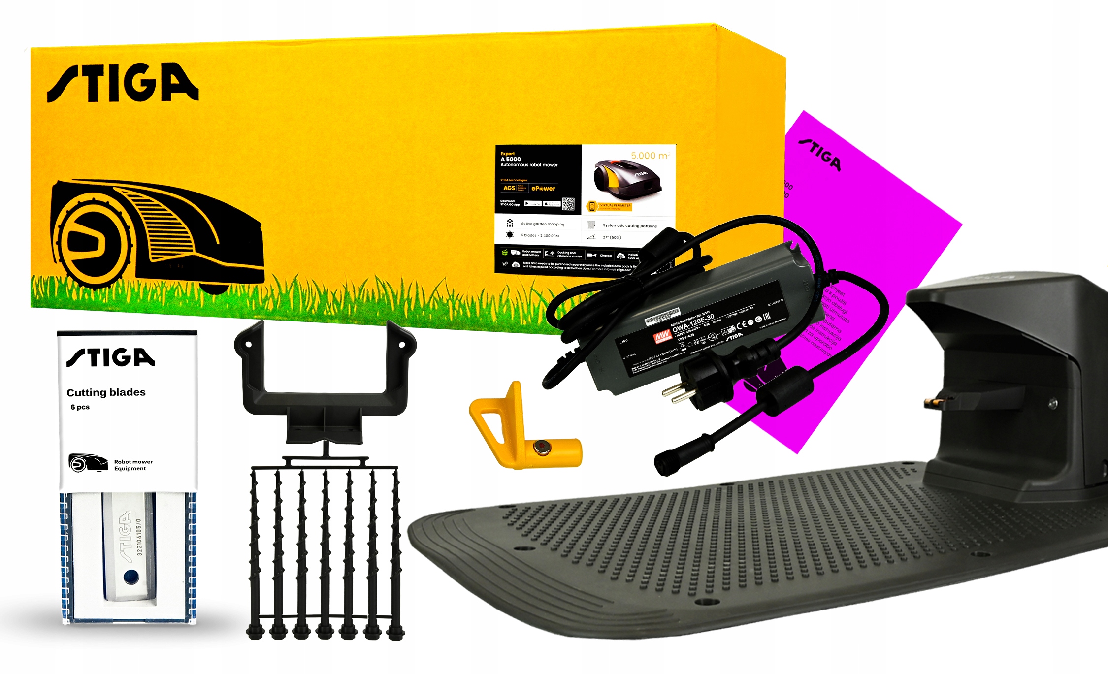 - ✅ Купуючи робота-косителя, ви отримуєте повний монтажний комплект з усіма необхідними компонентами. Отриманий пакет готовий до установки у вашому саду, тому ви економите час і гроші на автономне придбання установки та її компонентів.