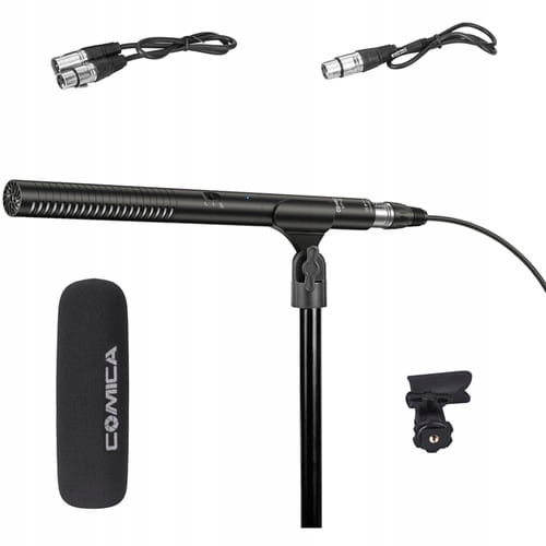 Comica CVM-VP2 — вдосконалений спрямований конденсаторний мікрофон із суперкардіоїдним звуком. Його довгий капсюль чудово збирає звук, а металевий корпус ефективно захищає від перешкод або зворотного зв'язку. Мікрофон має порт XLR і може живитися від мережі Phantom 48 V або від однієї батареї AA (не входить в комплект). Взаємозамінний XLR - .
