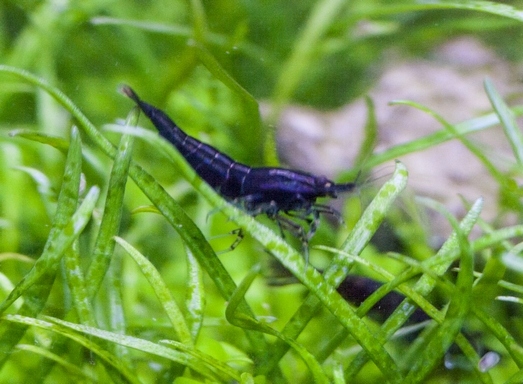 Один з найкрасивіших і найбільш затребуваних кольорових сортів Neocaridina. Відтінок коливається від синього до темно-синього, іноді з темнішими плямами.