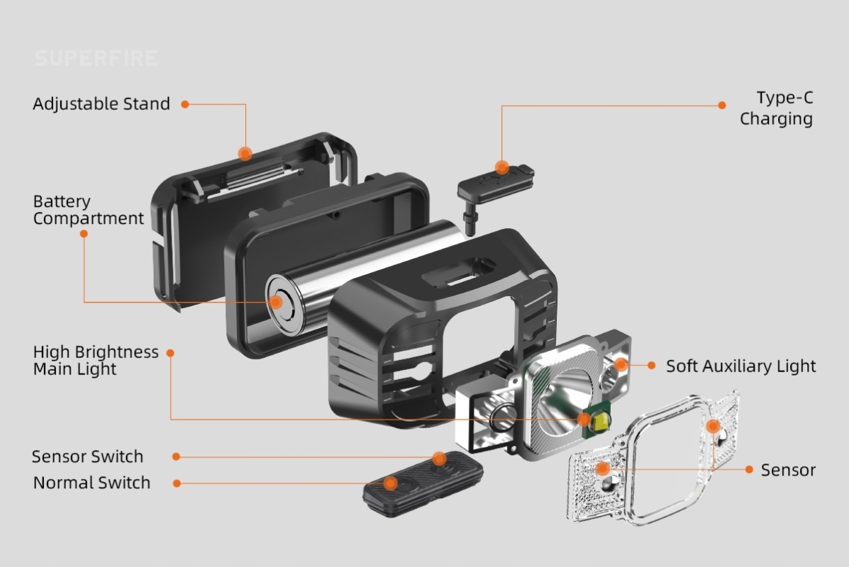 Supfire HL75-S LED FLAT 5W, 350LM, USB-C, Li-Ion