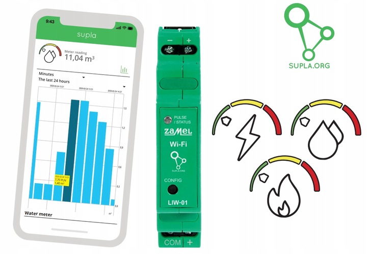 Дані вимірювання зберігаються на стороні хмари Supla, з якої згодом ми маємо можливість їх прийняти. Енергія, споживання води та газу,