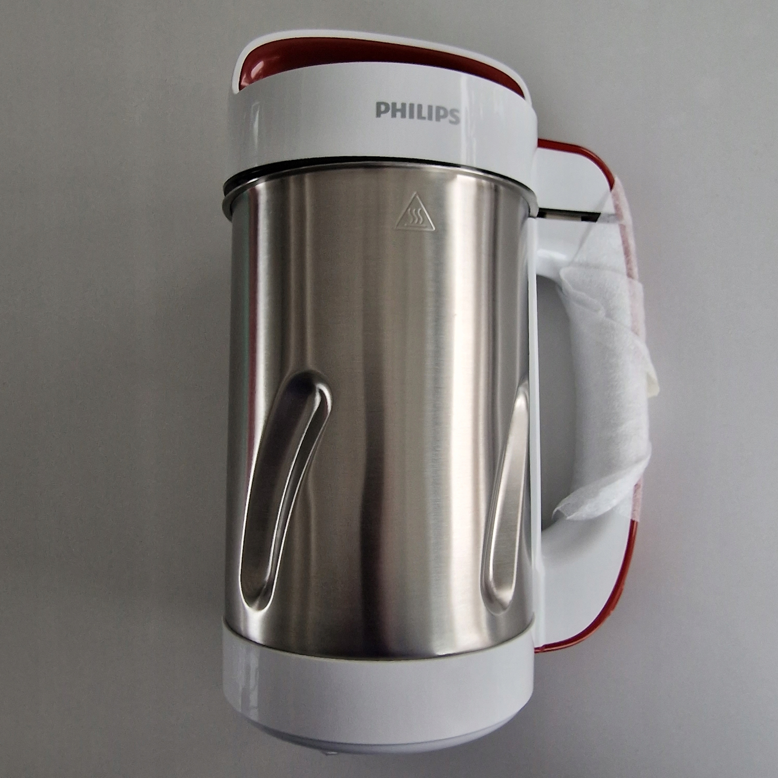 Philips Viva Collection HR2204/80. Потужність нагріву: 1000 Вт, вхідна напруга змінного струму: 230 В, частота вхідного змінного струму: 50 Гц. Ширина виробу: 230 мм, Глибина виробу: 230 мм, Висота виробу: 345 мм. Матеріали: Метал, Матеріал глечика: Нержавіюча сталь, Матеріал леза: Нержавіюча сталь. Ємність: 1,2 л