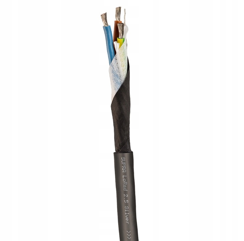 lorad срібний spc -гнучкий кабель, що складається з 3 проводів з 320 одиничних кабелів, виготовлених із міді, розміщеної сріблом. Кабель пройшов випробування на вигин 30 000 разів без пошкоджень.