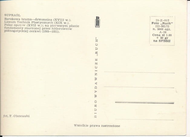 Просматривая «Супрасльские живописные виды - 038167» данное изделие из «Мазовия» вы можете быть уверены, что после оформления заказа, доставки в Украину, вы получите именно то, что заказывали, в оговоренные сроки и европейского качества.