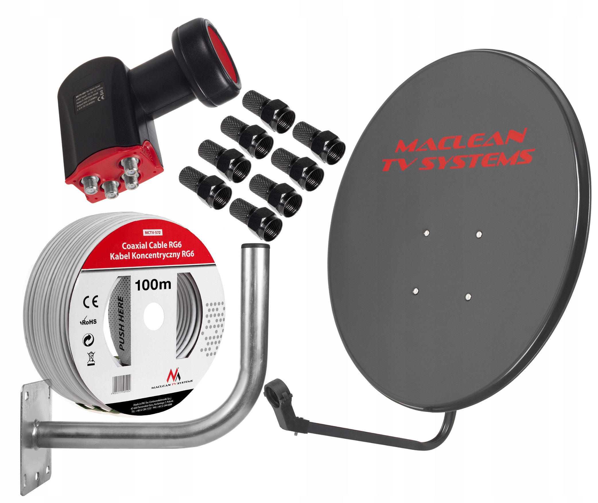 Чотири супутниковий конвертер має чотири повнодіапазонні конвертери, з’єднані в одному корпусі. Наша модель — пристрій преміум-класу з дуже низьким коефіцієнтом шуму. Він без проблем справляється з прийомом HD-сигналів. Конвертер кріпиться до супутникової антени в стандартному тримачі 40 мм.