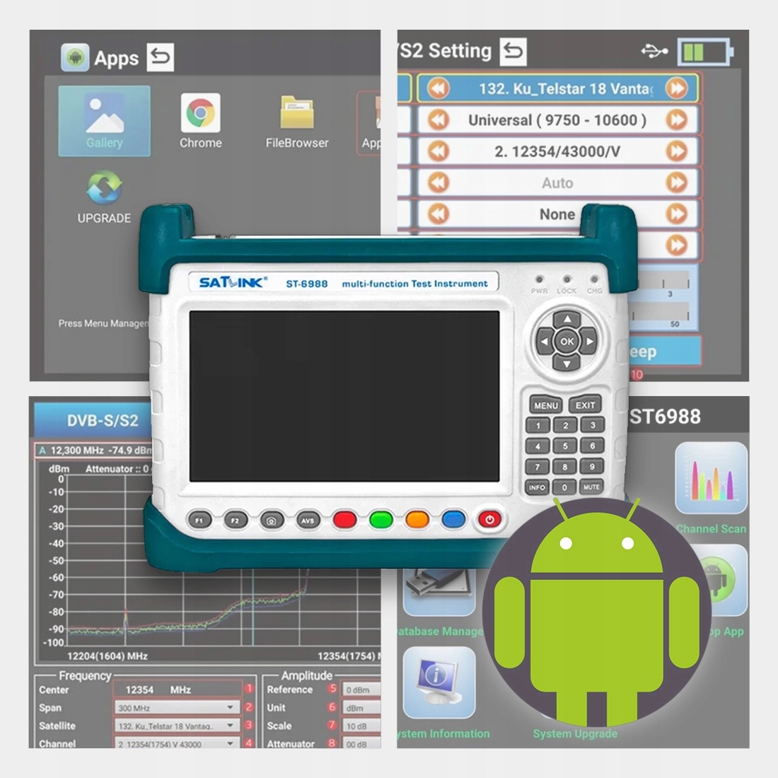Супутниковий лічильник сенсорного екрану Satlink 7 "РК-хД Android 3000mah DVB-T/T2