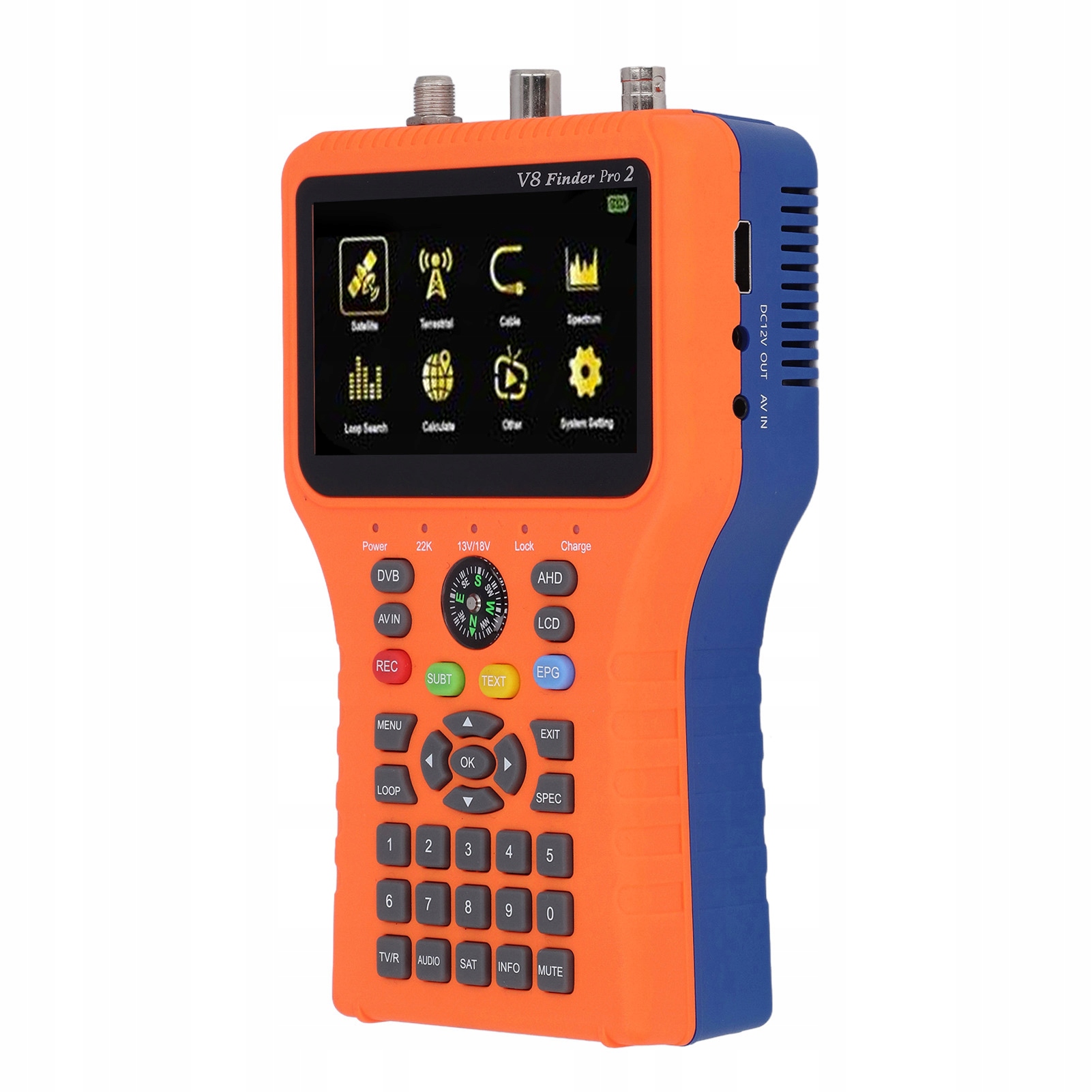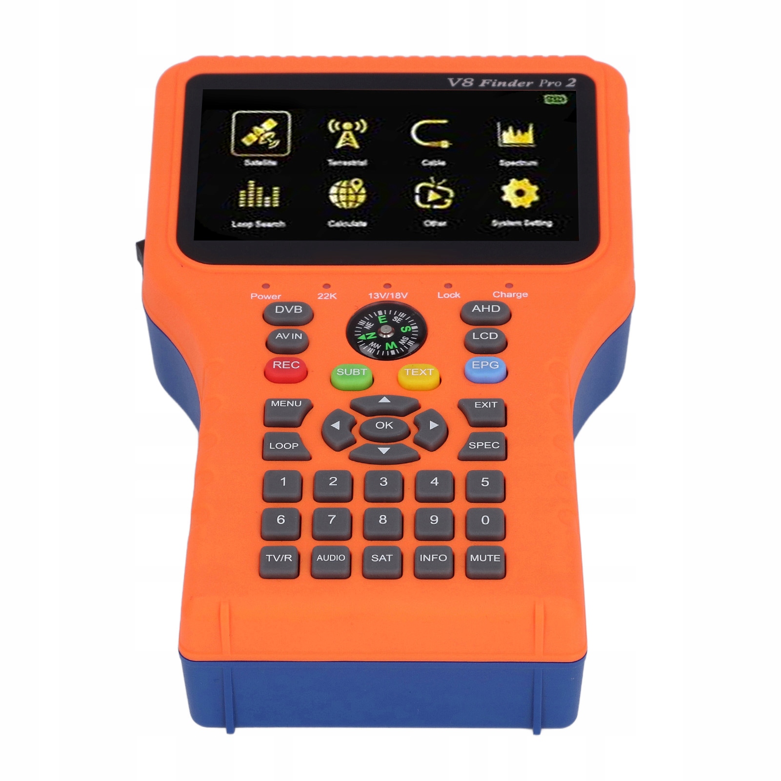 2. 4,3 дюйма кольорового екрану: оснащений силою сигналу та високоякісним цифровим вимірювальним пристроєм, сповзає всі попередні параметри супутникової інформації, аналізатор циклів та конструкції.