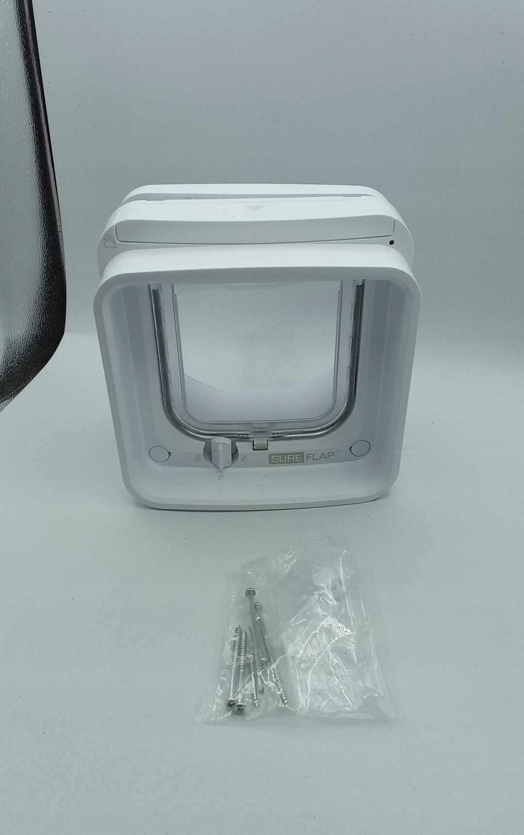 Sure Petcare SureFlap мікрочіп Connect cat flap, сумісний із програмою для смартфона, встановлюється у двері, скляні панелі, стіни (концентратор і 4 батарейки типу АА (не входять у комплект), білий