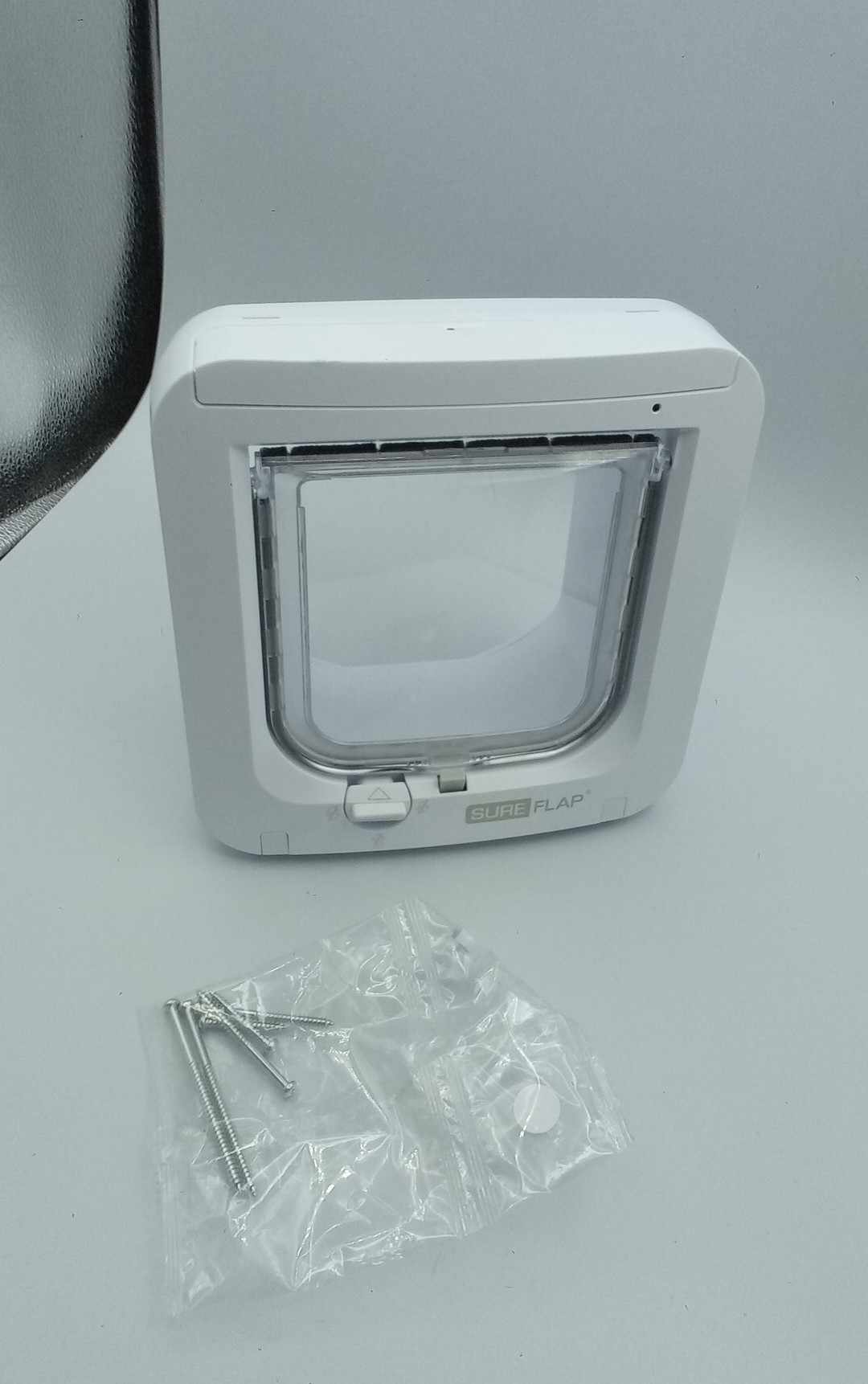 SureFlap - Sure Petcare - Клапан для котів з мікрочіпом - Білий - Відскануйте ідентифікатор свого домашнього улюбленця на вході - Перевірте розмір свого кота - Відкриття клапана становить 4 3/4