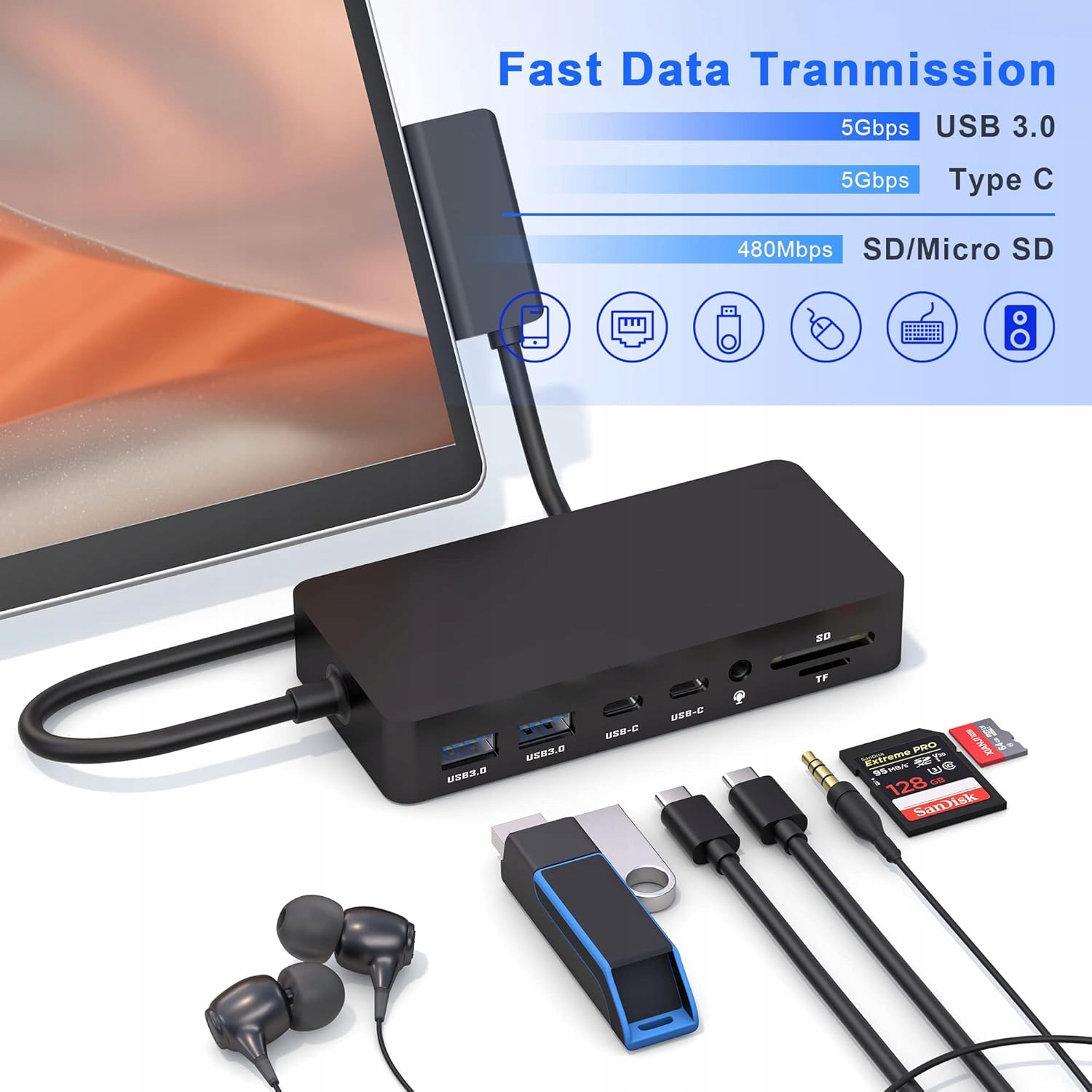 - Швидка коробка передач та стабільна мережа: Станція док-станції поверхні пропонує повні 10/100 MB/S через порт Ethernet RJ45, швидше завантаження, швидші файли, зменшення затримок, поверхнева док-ранку забезпечує більш стійке підключення Wi-Fi. З 5 ГБ/с швидкості для 2х USB -портів A 3,0 та 2x USB C 3.1 портів, додаткові порти USB для клавіатури, миші або USB -пристроїв. Побудований -зчитувач TF та SD -картки, 3.5 аудіо може бути підключений до аудіо обладнання, таких як навушники та динаміки