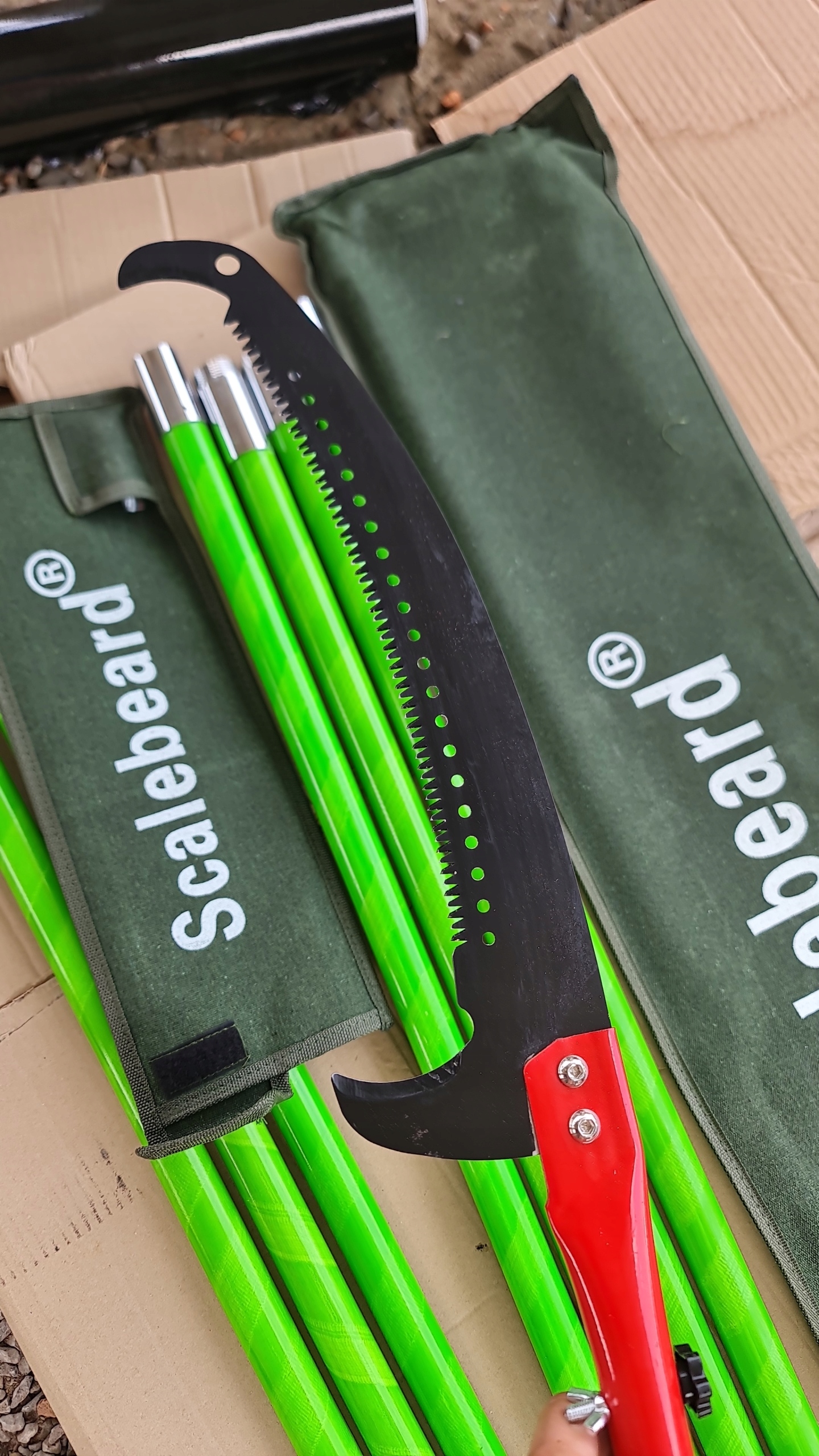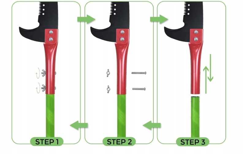 - Міцний матеріал - гілка пила складається з 8 склопластикових стрижнів та леза з легкої сталі, воно легке і довговічне. У посиленій версії до Макса. Робоча висота 10 м ідеально підходить як вертикальні ножиці обрізки, телескопічна пилка та витягування пилки.