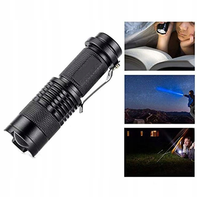 - Ліхтарик з регульованим світловим променем, металевим корпусом і затискачем для пояса