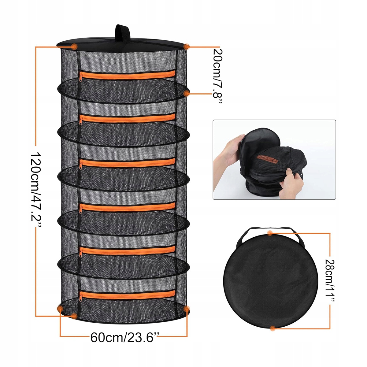- W Sumie 6 Warstw, Każda o Wysokości 20 см/7,87 Cala , Zapewnia dużo miejsca do Suszenia różnych rzeczy. Błyskawiczny , łatwa do Otwierania I Zamykania, Każda Warstwa Ma Niezależny Zamek Błyskawiczny, Co Pozwala na Sortowanie Suszonych Rzeczy, щоб уникнути їх змішування.