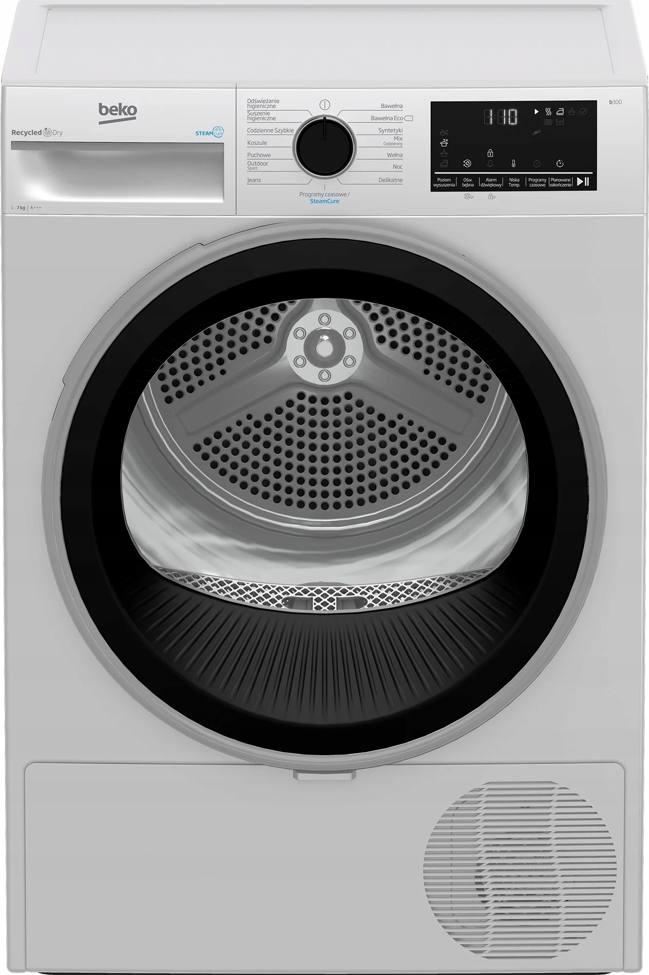 Сушильна машина Beko B3T67249WPB з тепловим насосом. Вантажопідйомність 7 кг. Датчик сушіння та вологи OptiSense. Клас енергоспоживання А+++. Білий колір.