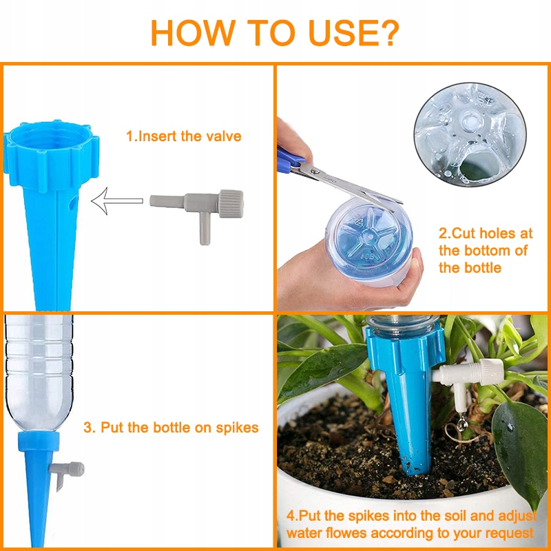 Поливка для рослин горщикова накручується на різьбу стандартних пляшок. Після його встановлення нам не потрібно турбуватися про стан рослин, які ми не можемо полити деякий час.